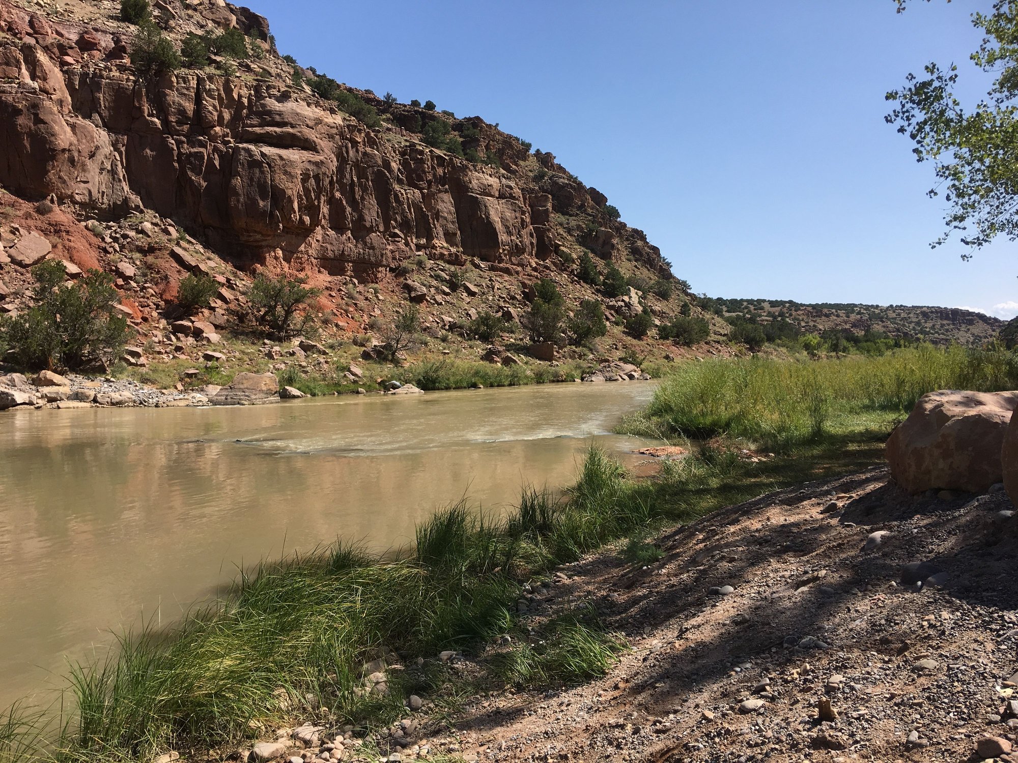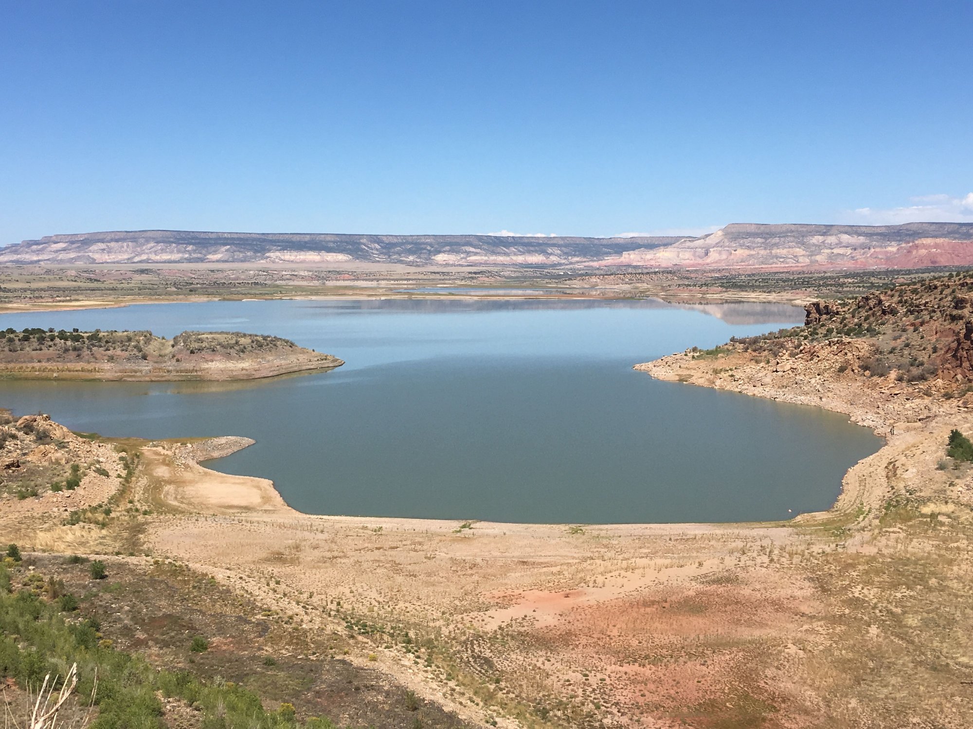 Once out of the Cibola NF the NMBDR follows the highway to Abiquiu lake, goes over and down the back side of the dam, then is again a hard dirt path, and follows the Chama river for a good distance.