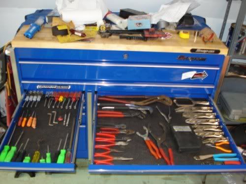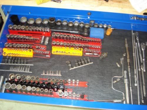 Probably have most size sockets, wrenches, specialty crap as well as one would need to work on thier own car and whatever I dont have can usually be done with some other tool if I am carefull.