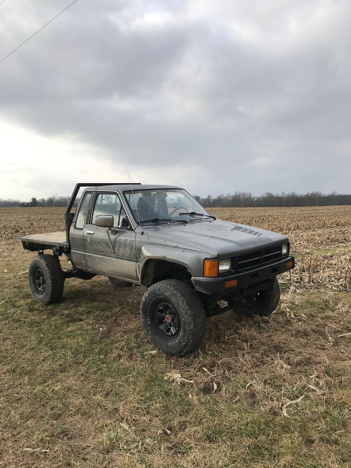 Hello yotatech, I’m listing this for a friend that is local to me, he is looking to sell his very nice 1988 Toyota Pickup. This pickup has a perfect frame, very good body and is has a custom steel flatbed with LED lights. Has a 4 inch drop bracket lift kit (procomp?), and has 33x12.5 tires on refinished stock Toyota wheels. The truck is very clean aside from a few dents and small rust holes in the body.