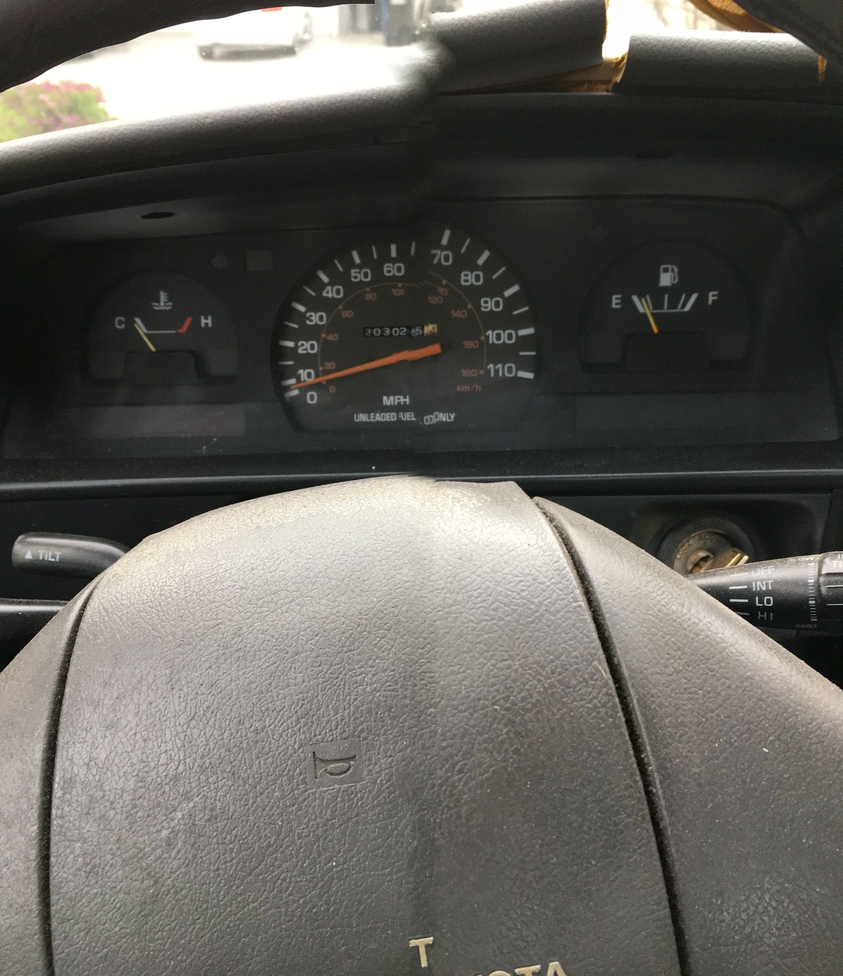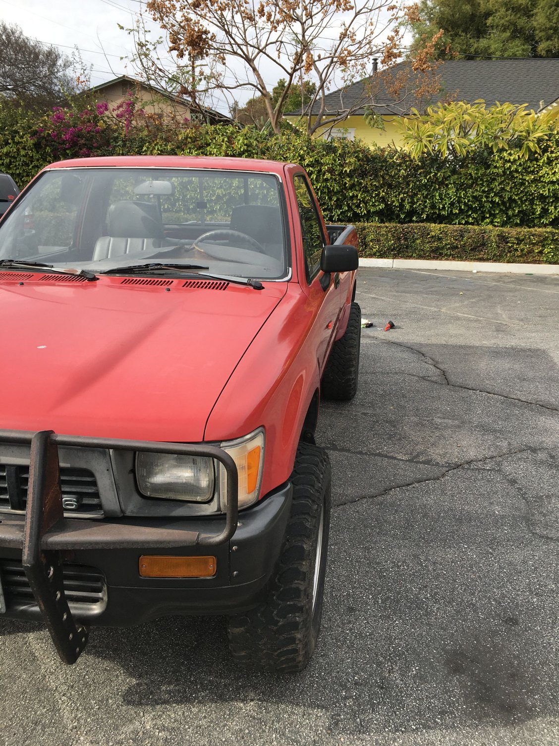 I have owned the truck since 2000. I am the second owner. The seat was reupholstered a month ago, the interior is good for a 30-year-old truck and the paint is original (not perfect but decent for a 30-year-old, California Rust-Free Truck). The front bull bar has rust and is ugly, the rear bumper is factory and would look nice with new paint, a repair and end caps. The tires hold air but are on their last legs. The wheels are 30 years old, perhaps they are considered “vintage”, I think black steelies would look better. The dash cap is toast. Replacements are available on Ebay, though expensive. Glue on dash caps are available and affordable.