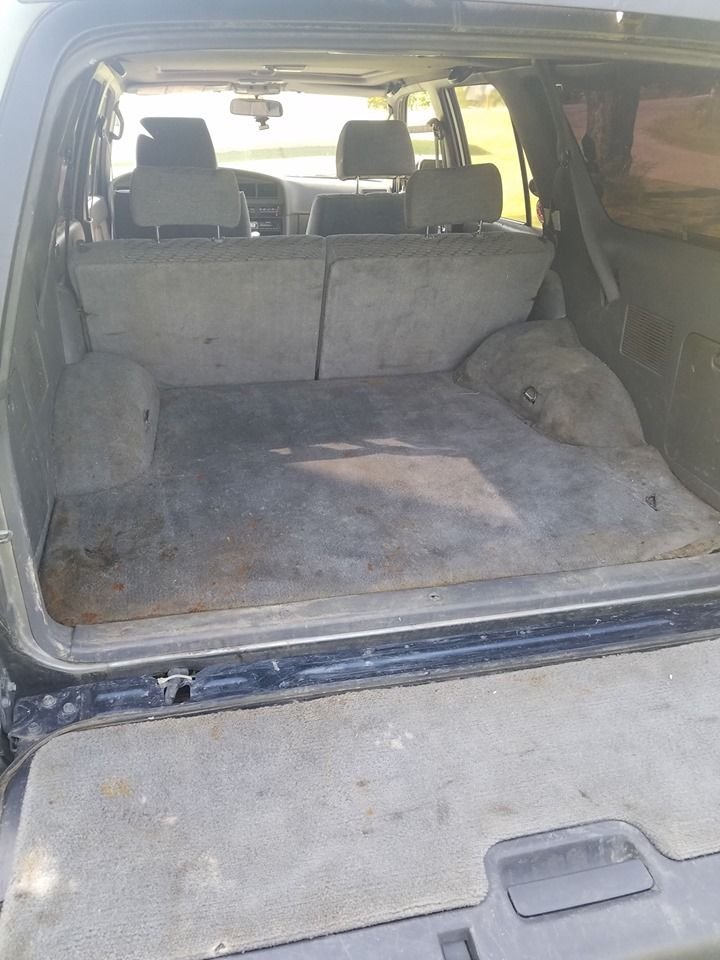 Exterior - California rust free. It has some dents and dings but nothing major. Painted a flat olive green. Not professional but looks fine as this was mostly used for hunting, fishing, camping etc. Has good all terrain tires on it. Size 31x10.50x15. New rear coil springs and shocks both front and back. One new wheel bearing last year in the rear. Stock roof rack includes an extra set of bars to support the basket rack. I swapped a rear tail gate and swing spare tire carrier from a 1990 model to carry two spares (both included. One excellent tire and one is new) Brush guard on the front. Class 3 towing package.