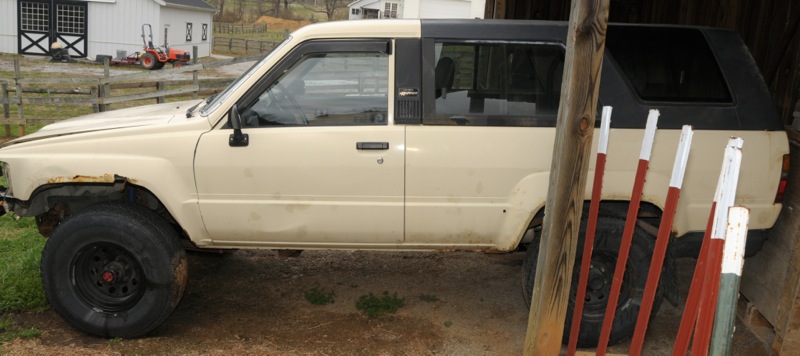 We're heading back out to our RV park in Iowa this Sunday, and I've decided to sell our stock 85 4runner that we had been using out at the park to get gas for our equipment every few weeks. I had planned to bring it home and build it up eventually, but I stumbled across an okay deal on a partially built '86 4runner and decided to buy and continue building it up instead.
