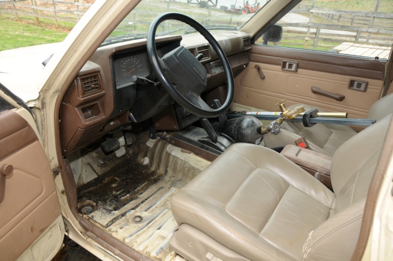 - You'll also notice from the pics, I didn't have the time to clean the truck up or remove everything from inside it before taking pics. It's actually super clean inside, but all the floorboard padding and carpet has been removed. Compared to the '86 I bought, this '85 is super super clean with no rusted floorboards. Everything inside the truck will be removed before we leave this weekend.
