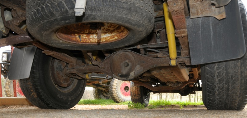 - While at the park two years ago, I had my cousin work at the park for a little bit. He proceeded to get drunk one night, essentially stole the 4runner and took it for a joy ride at our park. Well, needless to say, he whacked a tree on the driver's side of the truck, which you can see from the pics. It damaged the end of the bumper, the headlight, and turn signal. Plus, it tweaked the driver's side spring a bit, so it rubs on the rear part of the fender when you turn left. I never messed with it, because I had planned on building it up and all of that would get removed or cut off when I built it up. But, because of this, the steering wheel is off, but it drives just fine otherwise.