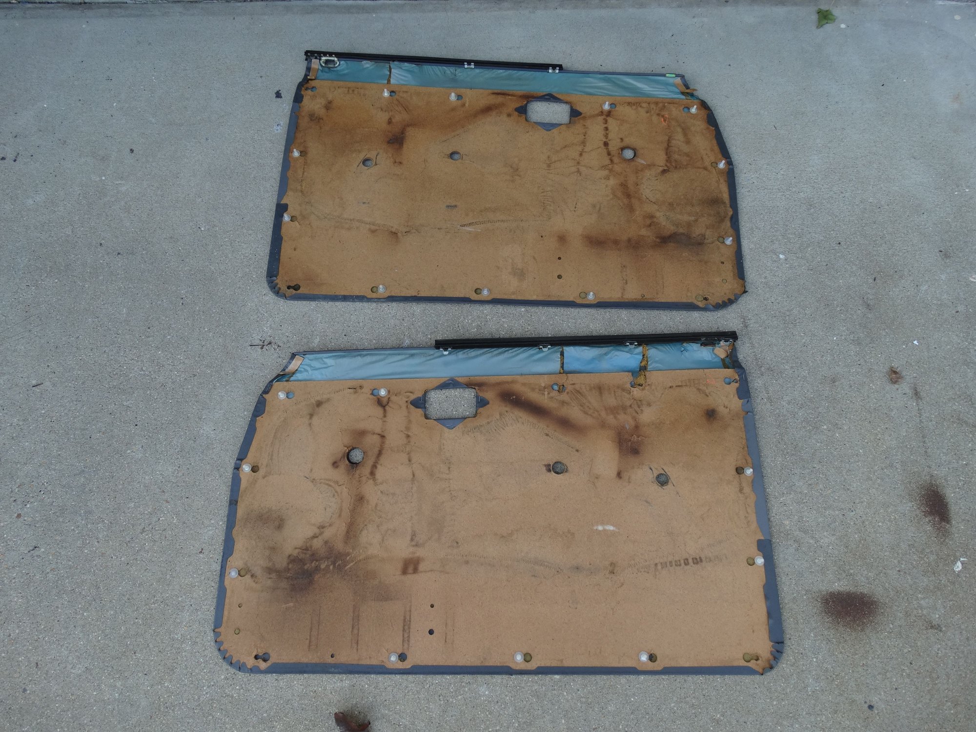 I don't want to trade, but I do have a set of gray door panels for sale. They are for a vent window door but you can swap over the trim at the top edge to convert them to fit your window type. Make me an offer. I'm up near Virginia Beach.