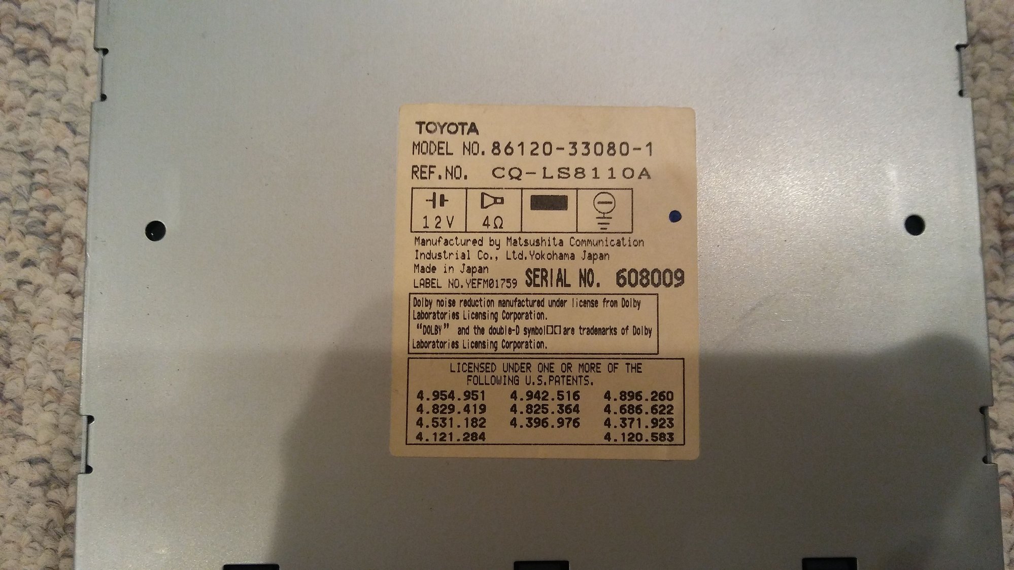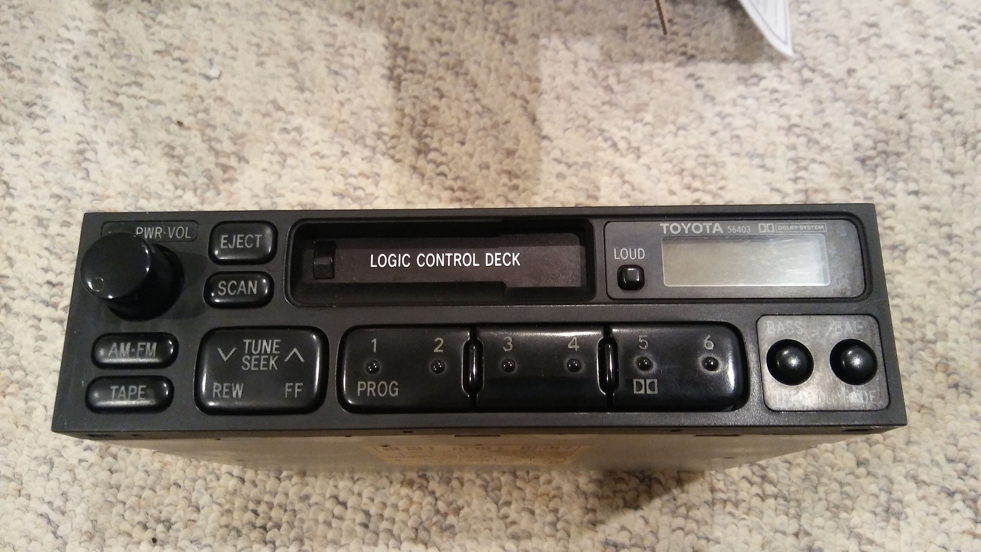 Factory Toyota AM/FM cassette radio head unit. Also came out of my old 93 pickup. Took it out when I received a Pioneer stereo kit for Christmas one year. Still worked when removed. I also have the factory pocket that goes in the dash below the stereo. $25 + shipping.