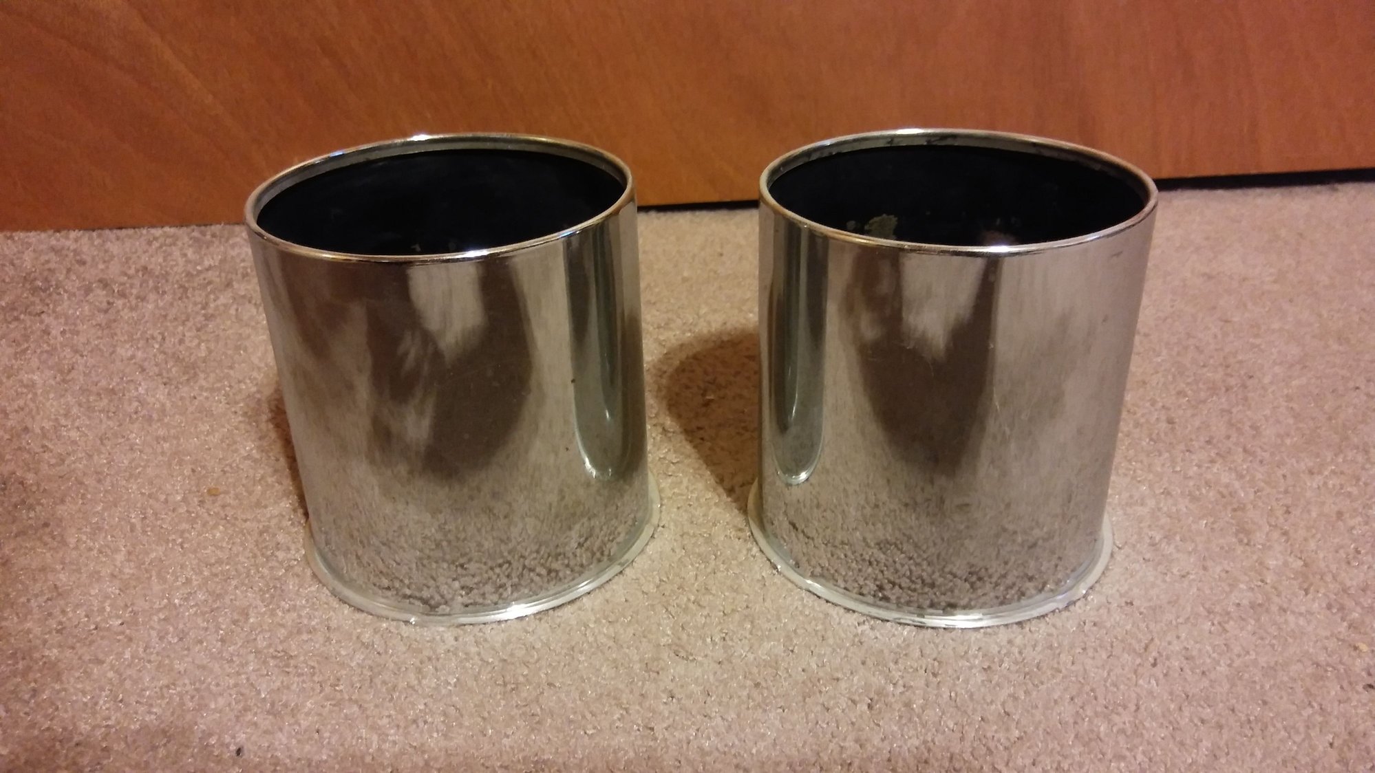 Pair of American Racing open center caps. These came with my Outlaw II rims when I bought them used. Never used them on my truck. They have a couple dings in them. The black paint on this inside is peeling a bit. Will fit any rim with a 4.25" center bore. $10 + shipping.