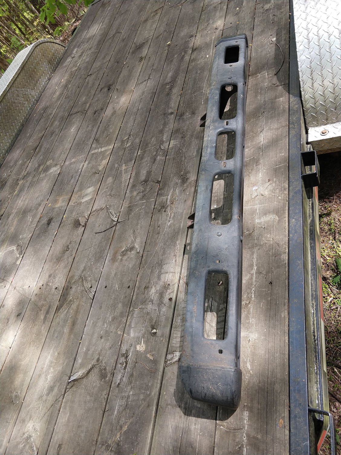 original bumper from my '83 project truck. Good shape, Needs paint. End Caps are in great shape. There are two ~3/8" holes drilled in the top of the metal section where a brush guard was attached. Both turn signals included. Wires are cut because I needed connectors to wire my ARB lights. $150 OBO plus shipping from 24018. I can also arrange delivery to Northern VA/DC area.