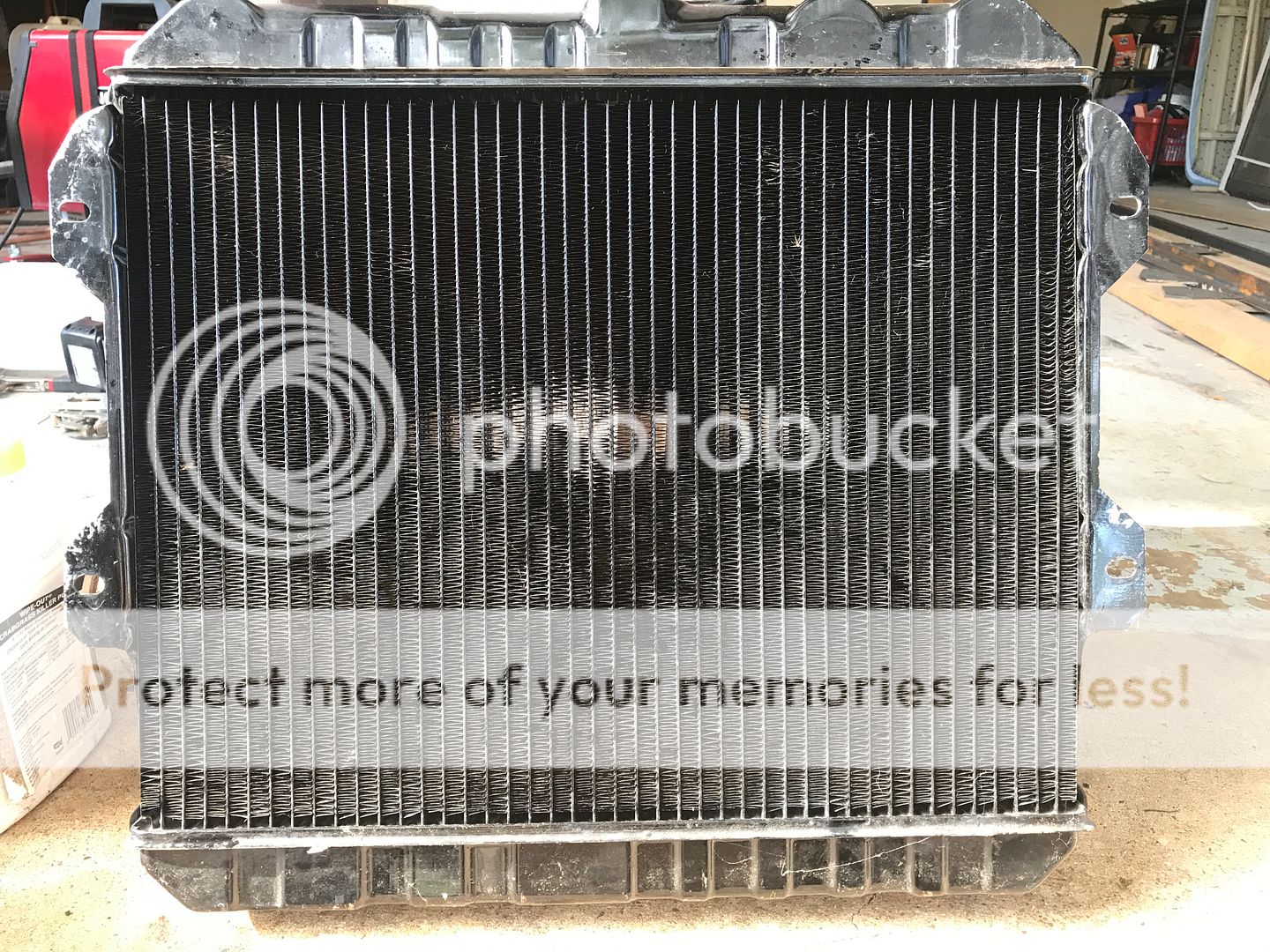 That's not dirt in the radiator. It's my garage post that you can see through the radiator