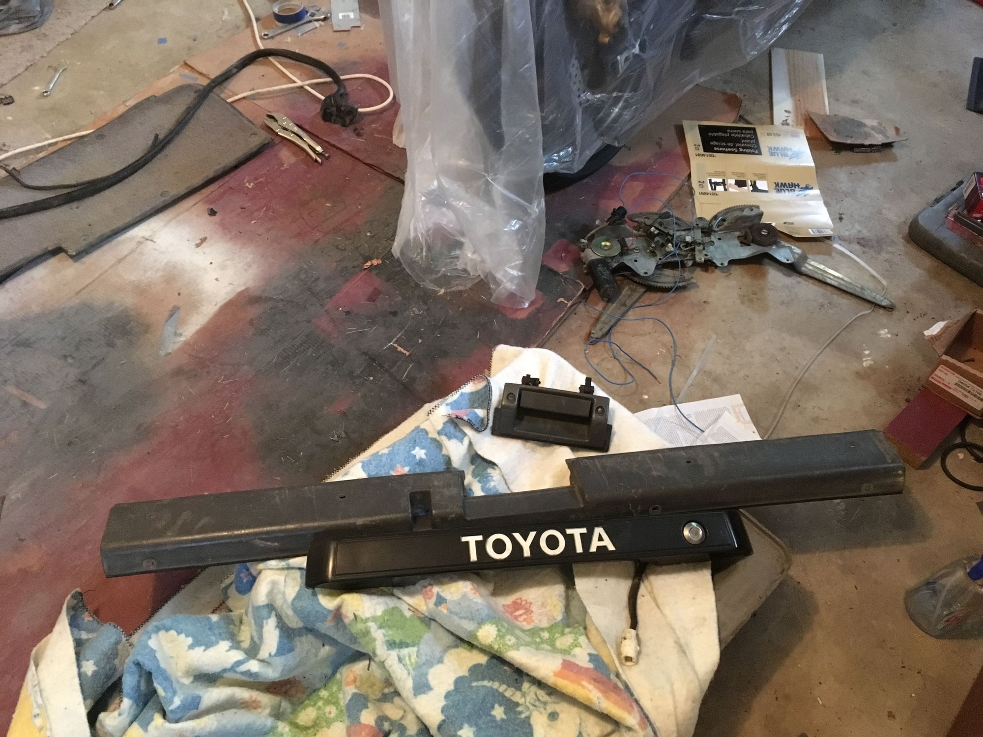 Old style grill with headlight doors. Missing the TOYOTA decal and has 3 small holes drilled for mounting the newer style “TOYOTA” and “V6” badges. Nothing broken but the chrome isn’t perfect.