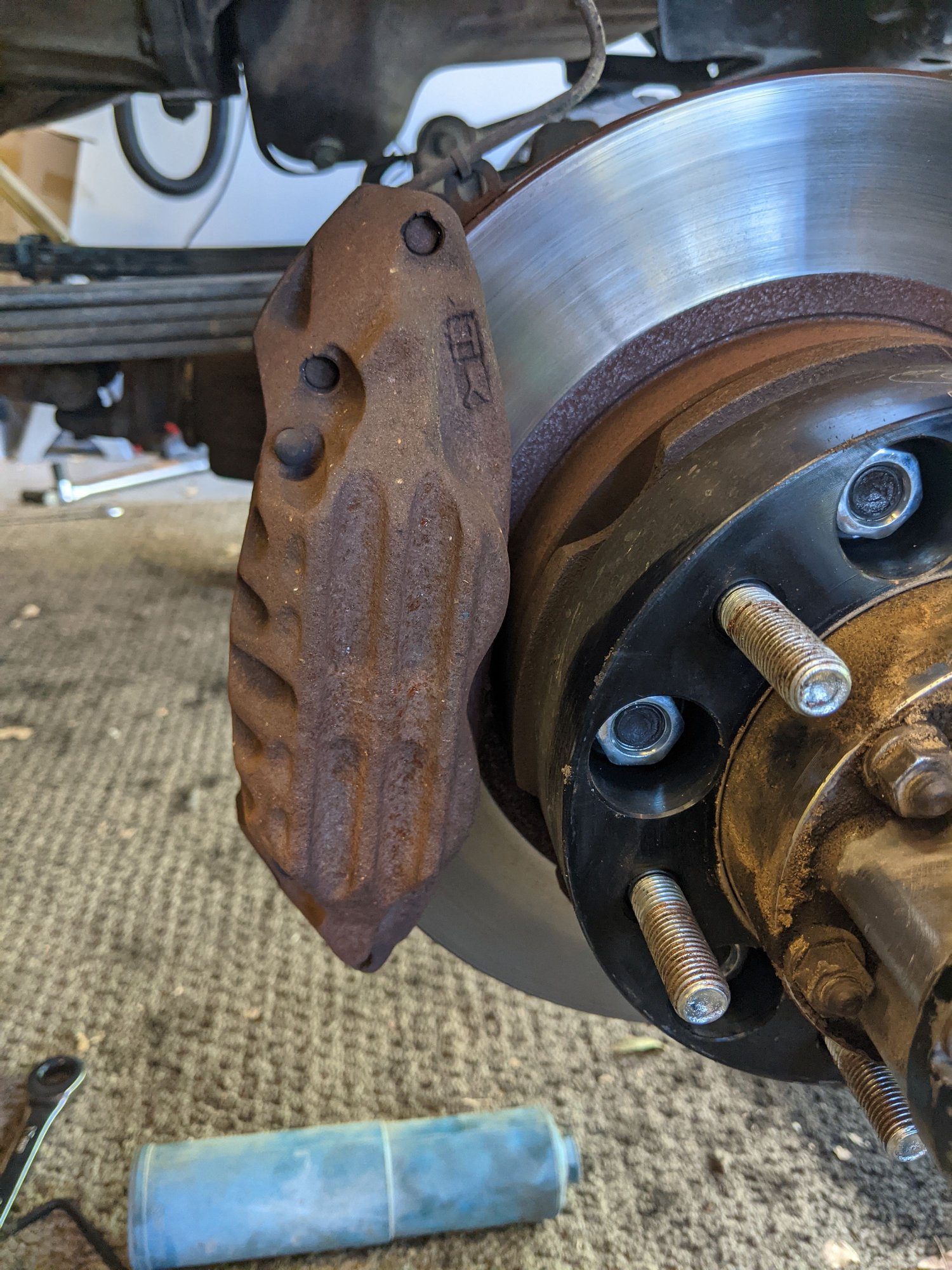 That looks to be a V6 calipers with SFA hubs, just like what I'm currently running. The IFS hubs moves the wheel mount surface out ~1.5".