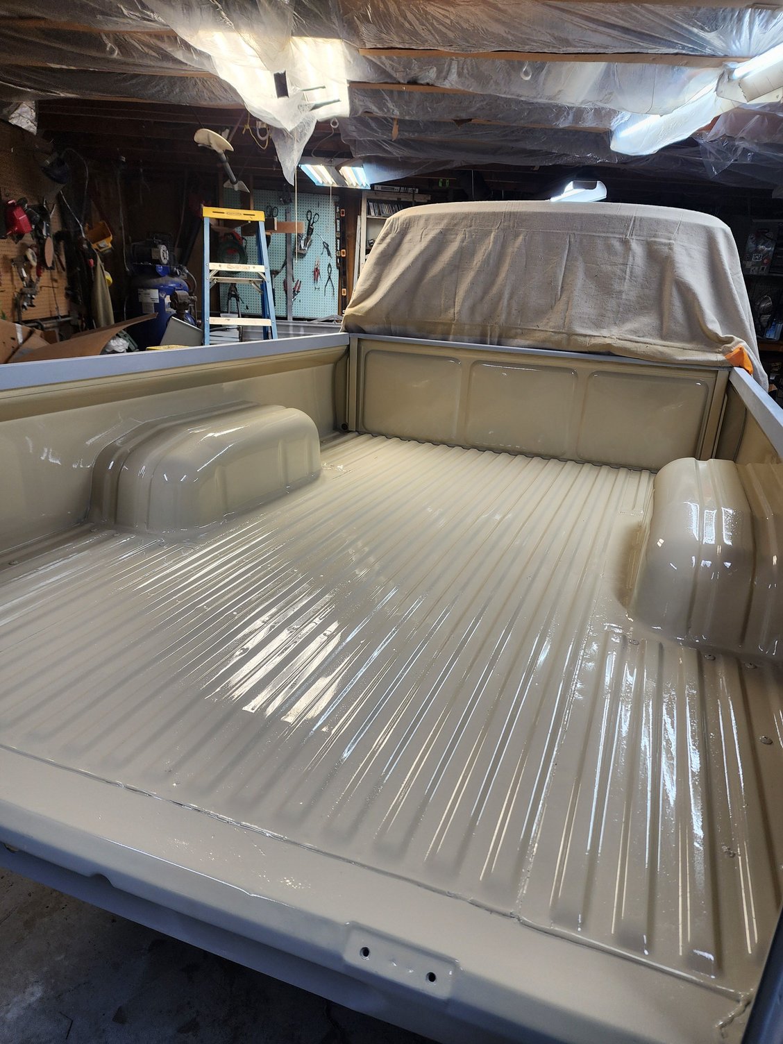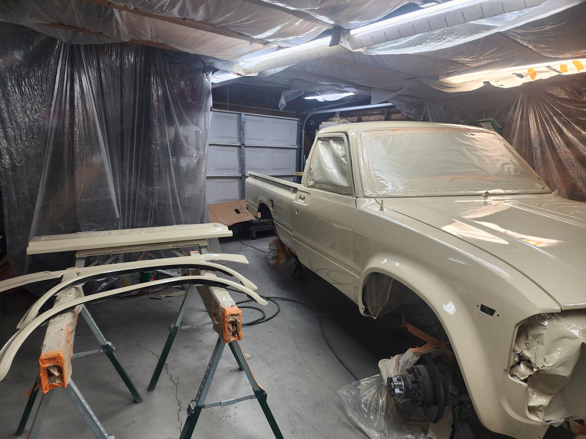 Thanks for the compliments. When I first started, I was going get some original graphics,but since the paint isn't really close to the 4A8 Toyota beige, I'm thinking of leaving it. I may paint the lettering on the tailgate black, and pay to have a bed liner sprayed in the bed and over the lip. My brother bought an S10 and the spray liner is so nice, it looks factory. It has the brand on it, but I can't remember the brand. I'm waiting on the quote I emailed for Friday. I'm open to suggestions though. I know that I couldn't do as nice of a job with any kit or DIY methods. I may paint the work boxes in the picture black, put them back on, and work out of it. I'm really undecided. I think I'm done with bodywork now. I did the truck last winter, the Civic in the picture the year before, and my 4Runner the year before that. I think the only thing that could change my mind is if I came across a FJ40 at the right price that needed bodywork. I sure can't afford the prices they get for them already restored and there wouldn't be a story behind it, like my 4runner. A friend saw it in a field back in 2000, I offered and bought it for $100, and have been driving it the past 25 years.