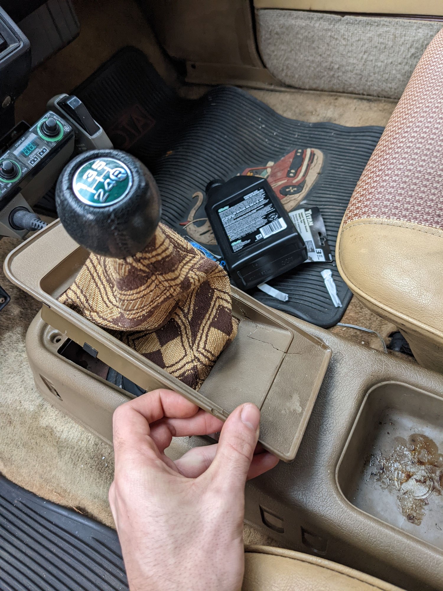 Now that it's running and driving pretty reliably, I'm starting to do what I can to make it look a little nicer. This shifter console (not sure what to call it?) was shattered when I got the truck home. I found most of the pieces and glued them together, thinking I could use some bondo to smooth over the cracks and repaint it, but if I can find an OEM replacement I'd much rather do that. Does anyone know what this part is called? I've been having a hard time googling for it, and it seems like this part wasn't used on al lot of the first gen trucks just going off of pictures I've seen.