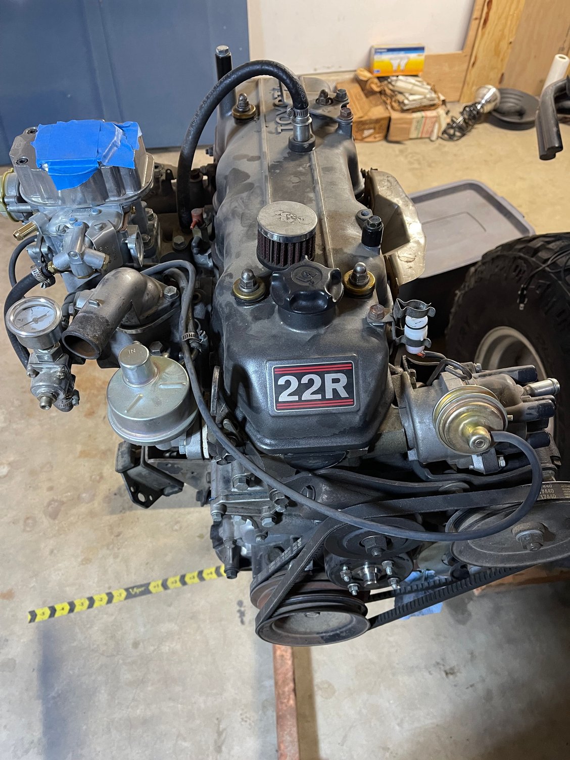 Also you are correct. On a "desmogged" 22R like yours (emissions equipment deleted, like the vacuum retard valve), you do plug off the inside diaphragm & provide vacuum to the outside diaphragm. The outside one is advance; the inside one is retard, & used to work with the emissions system stuff. There is no harm in running with the inside one plugged, with the engine set up the way you do.
