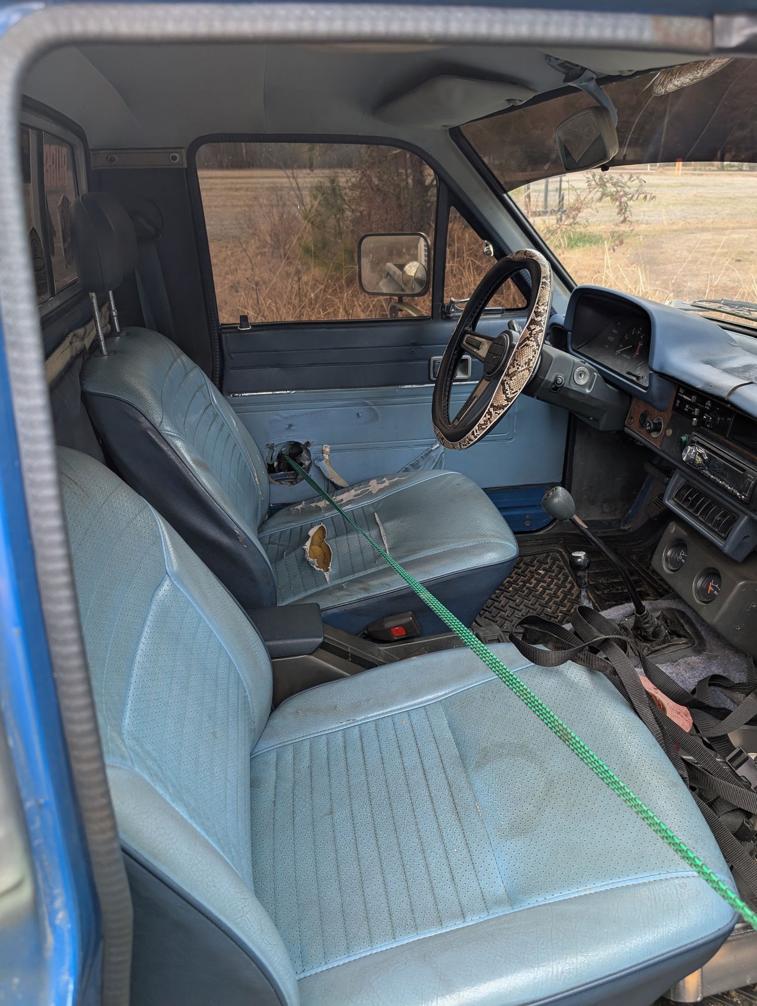Hello everyone! I just joined the forum since I just got this truck. I've been working on vehicles my entire life but always Jeeps, Chevys, and Fords. This one set me back a whopping $0 (I was storing it for a friend and he gave it to me for selling his boat). It's a 1982 Toyota Pickup SR5. Runs fine so I'm not too worried about power train but needs some cosmetic work for sure. As you can see in the pictures, there's a bungee cord holding the driver's side door closed. Trying to find parts for these is already proving difficult so where do y'all find parts for these things? Appreciate any help y'all can give.