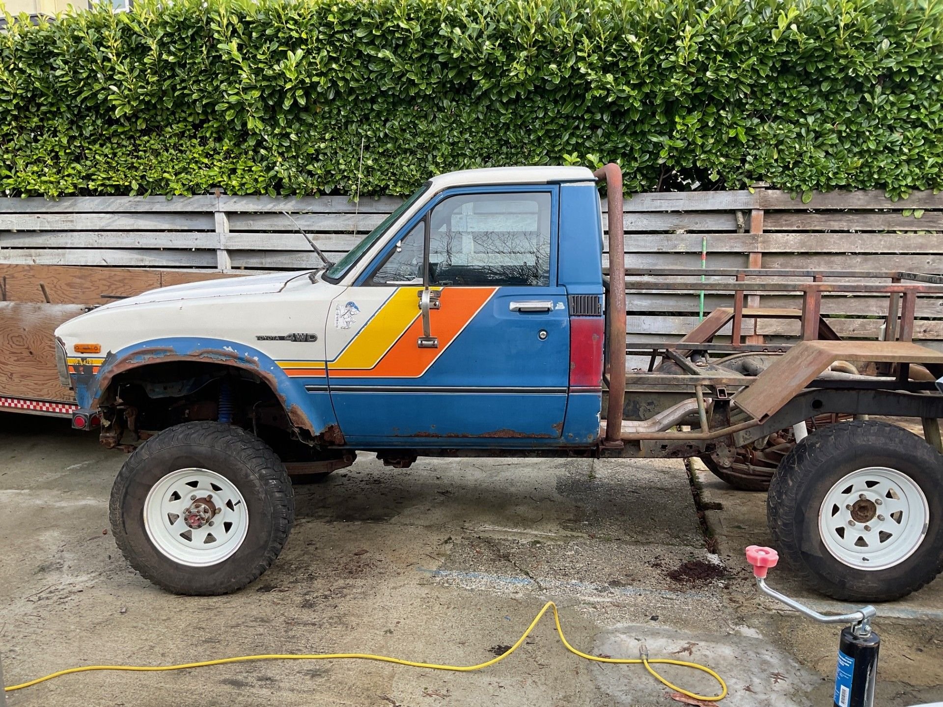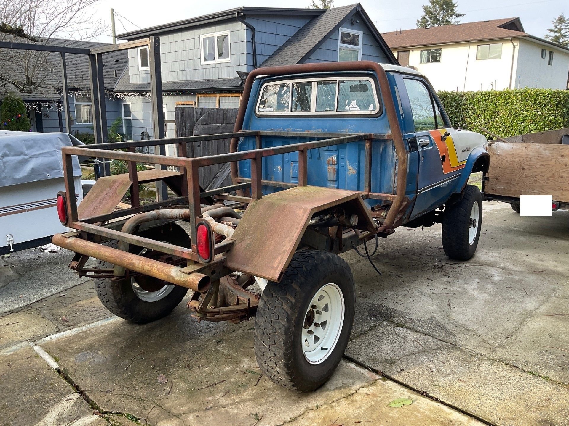 I've got a '81-ish pickup with a crusty body and mediocre (1 or two rust holes needed to repair). My measurements suggest it's one of the longer frames, but I do have a spare shorter frame (about 10" shorter?) that is in great condition. This truck currently has 4.88's and lockers F/R. 22r with a weber that seems to run well enough. The cab is hurting and will require a fair amount of clean up and patching. Already have a spare hi-steer kit and IFS steering box. I'm hoping to build something streetable and wheelable somewhere around wherever the "sweet spot" is for Toyotas of this caliber. I figure 33's or 35's, and fork out some $$$ for a dual tcase adapter, maybe some new shocks.