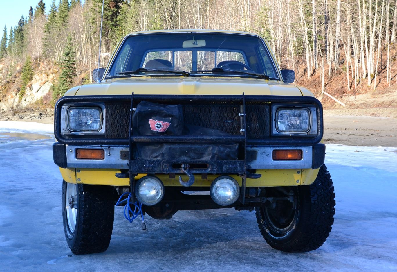 Here is one of my daily drivers. I picked it up a year ago for 500$; it was needing a transmission. I had one so buying the truck was a no-brainer. It was a one owner truck that was maintained its whole life at the local toyota dealership. It had 248 000 km's when I bought it. I am hoping to restore it one day. I would like to get rid of the bush bumper, winch, and aftermarket wheels and return it to original condition, including color and stripes. I am thinking about getting a fiberglass box for it.