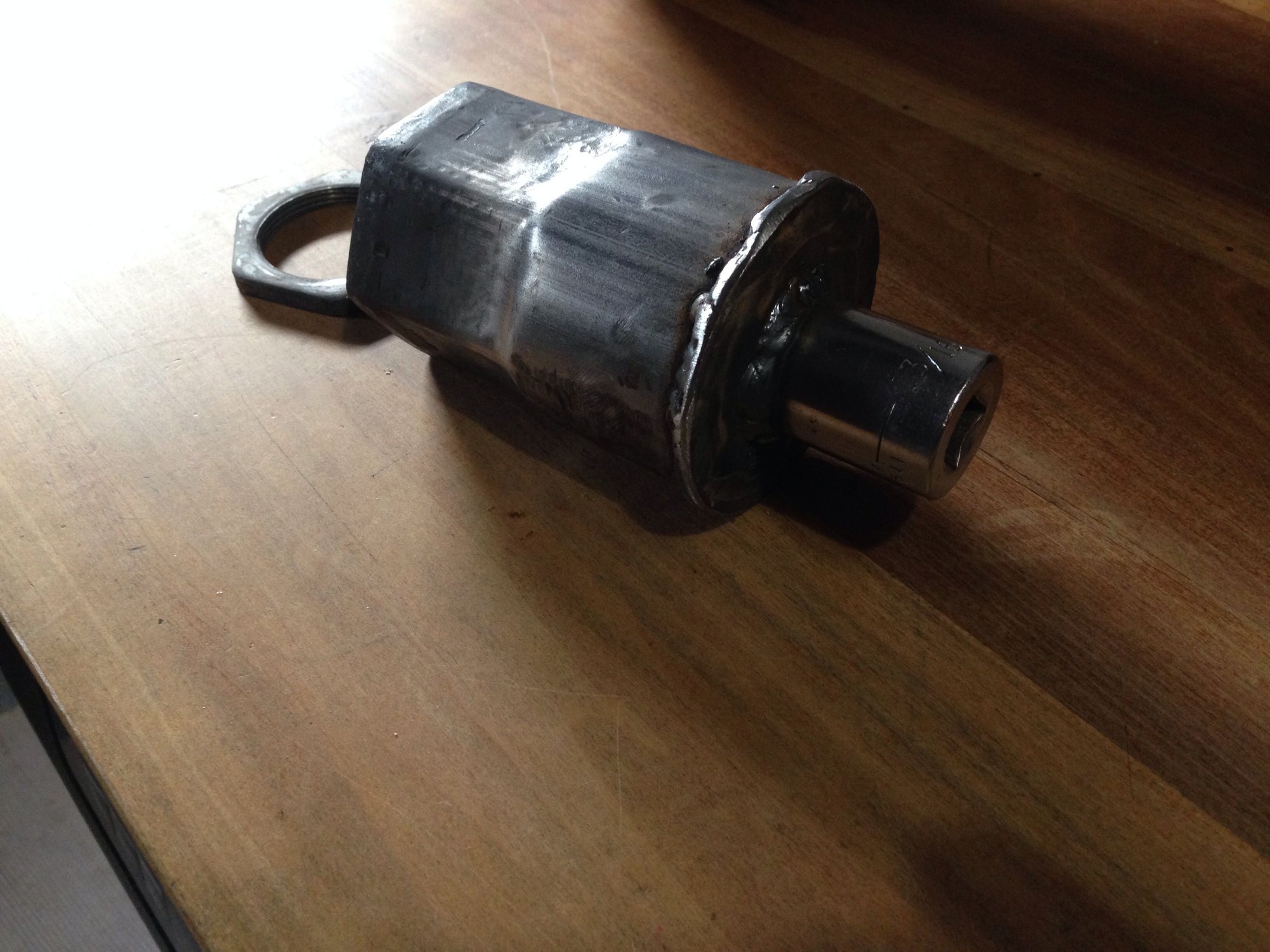Here are some photos of a home made one using 2.5"exhaust tube and welded on large washer and spare 1/2" drive socket. Sorry I haven't figured out how to upload photos here yet. Anyone?
