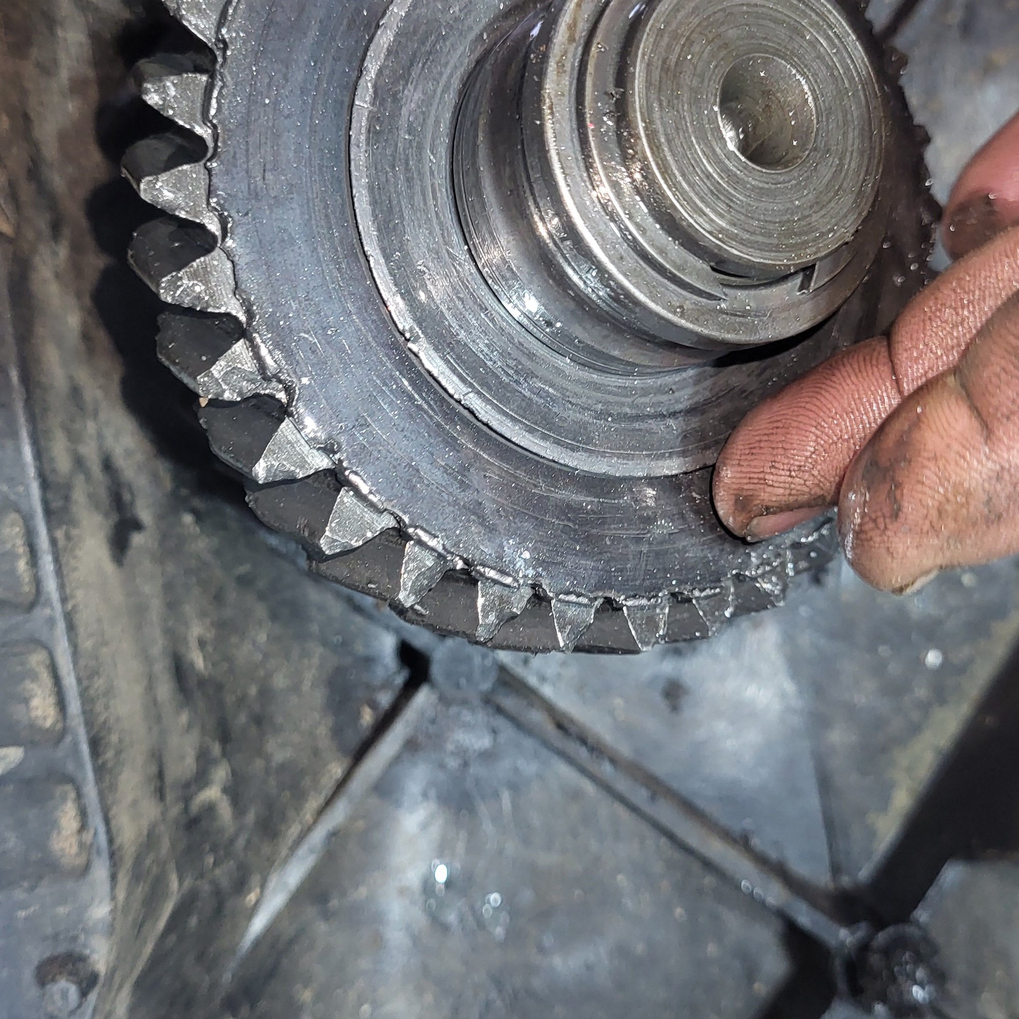 Even with that carnage that I posted, the low range set would still try to spin because it hooked to the input gear , even in high. And would GRIND and BIND as the teeth dont mesh anymore, the remaining teeth would spin it, then it would hit the broken section again. No way it broke clean off. and is just silent.