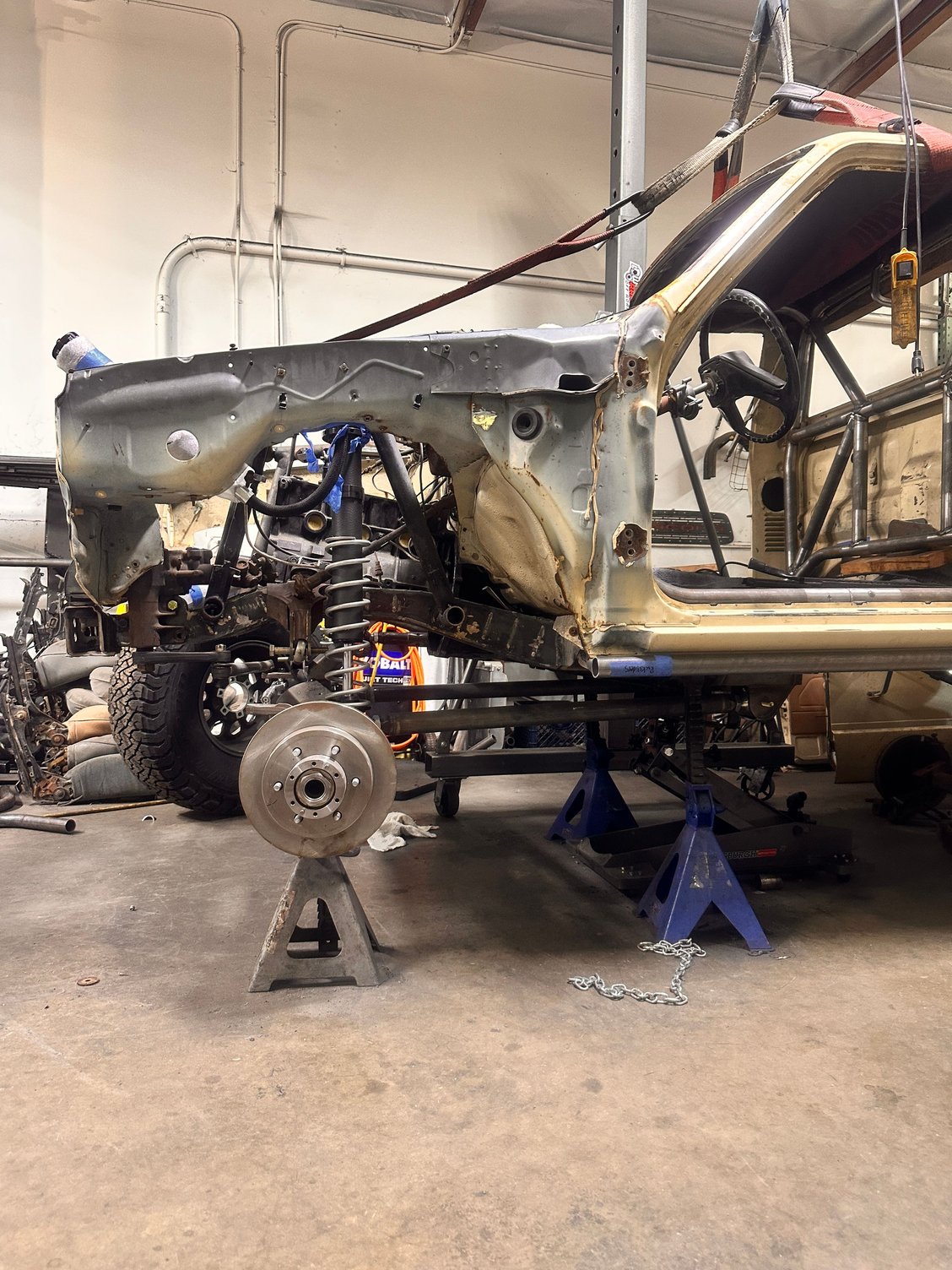 Even if I raised my engine higher, The lower links would hit the bottom of the frame rails. So I'd have to cut off my front frame rails and tube it or something to get more up travel. And do something about the slave cylinder. Rotate the engine maybe?? Even if I took my engine out, there is only so far the suspension can go.