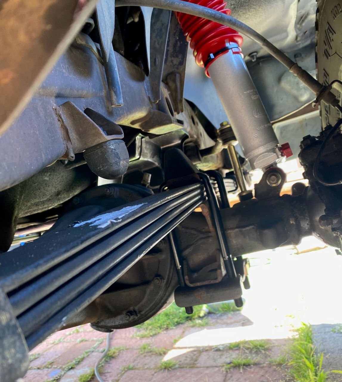 u-bolts are going up b'cuz I installed a narrowed down dana 44. No bump stops installed yet, but the u-bolts have been trimmed down so they don't hit the bottom of the frame on the inside