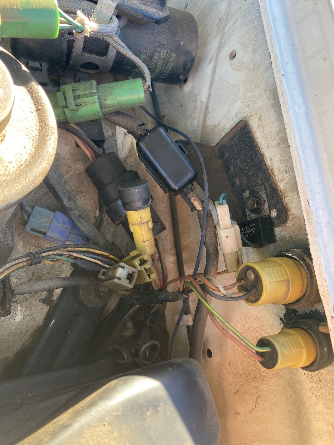 It’s that relay on the black bracket and it sparked it and now the truck just cranks no starting?