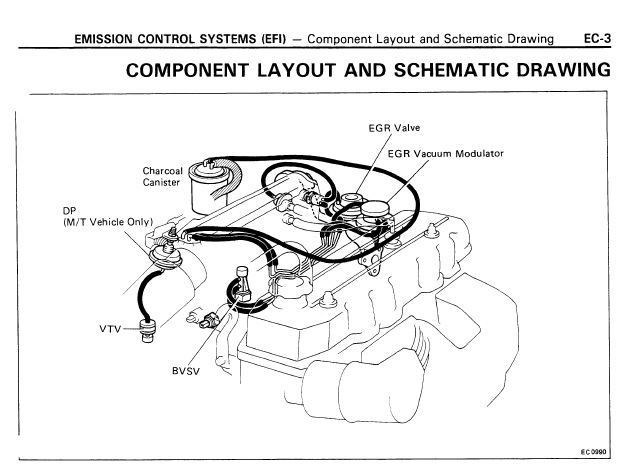 the vsv in front of the egr valve, in the center pic of the three pic lineup... there is a 3-pack of hoses or something grouped together, and the center one looks like it's not connected?