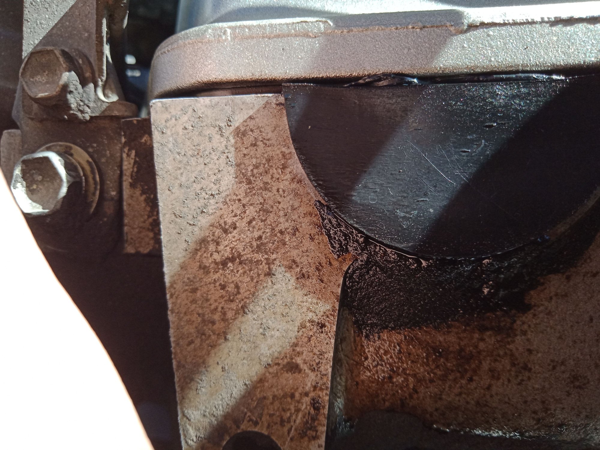 the owner did notify the engine overheated on him due to a cracked radiator leaking coolant at which point he had it replaced, which I'm assuming is what caused the white crust on the plug tips. As you can see cylinder 1-2 are taking on oil to some extent. The truck doesn't appear to blow any noticeable amount of smoke, and there weren't any major red flags when inspecting oil cap, dipstick or coolant too. Only eyebrow raisers were, that for oil that was replaced only 3000kms ago, it was completely black, and there was a small amount of smoke coming from the oil cap when I looked at it after the 20 odd minute test drive. I will say the engine did still feel like it was running fairly hot (contrary to the almost stagnate temp gauge) and the coolant reservoir is sitting almost bang on the 'low' mark. There is also a minor oil leak from the very front too, which goes hand in hand with the symptoms of the plugs. (pic related)