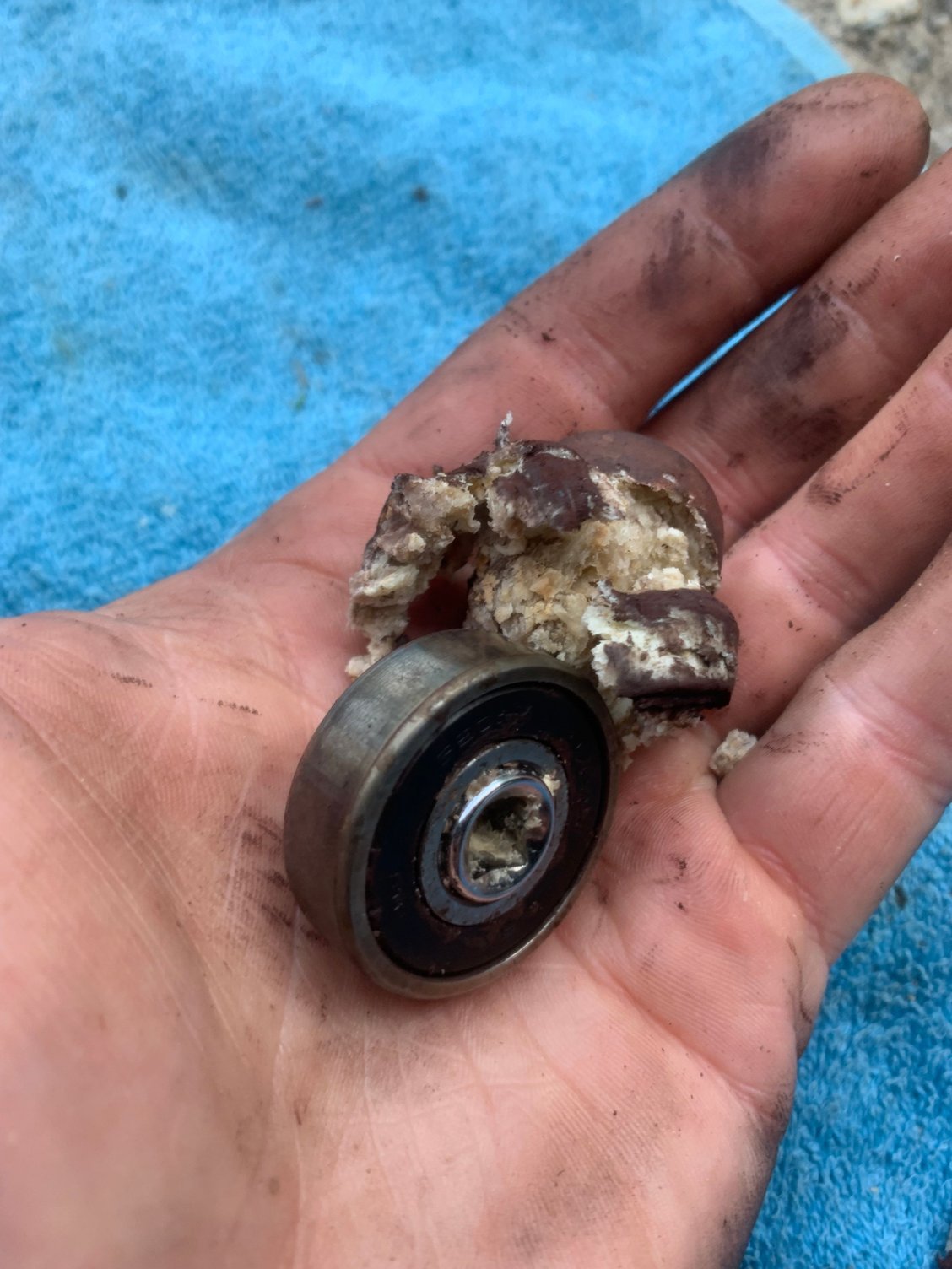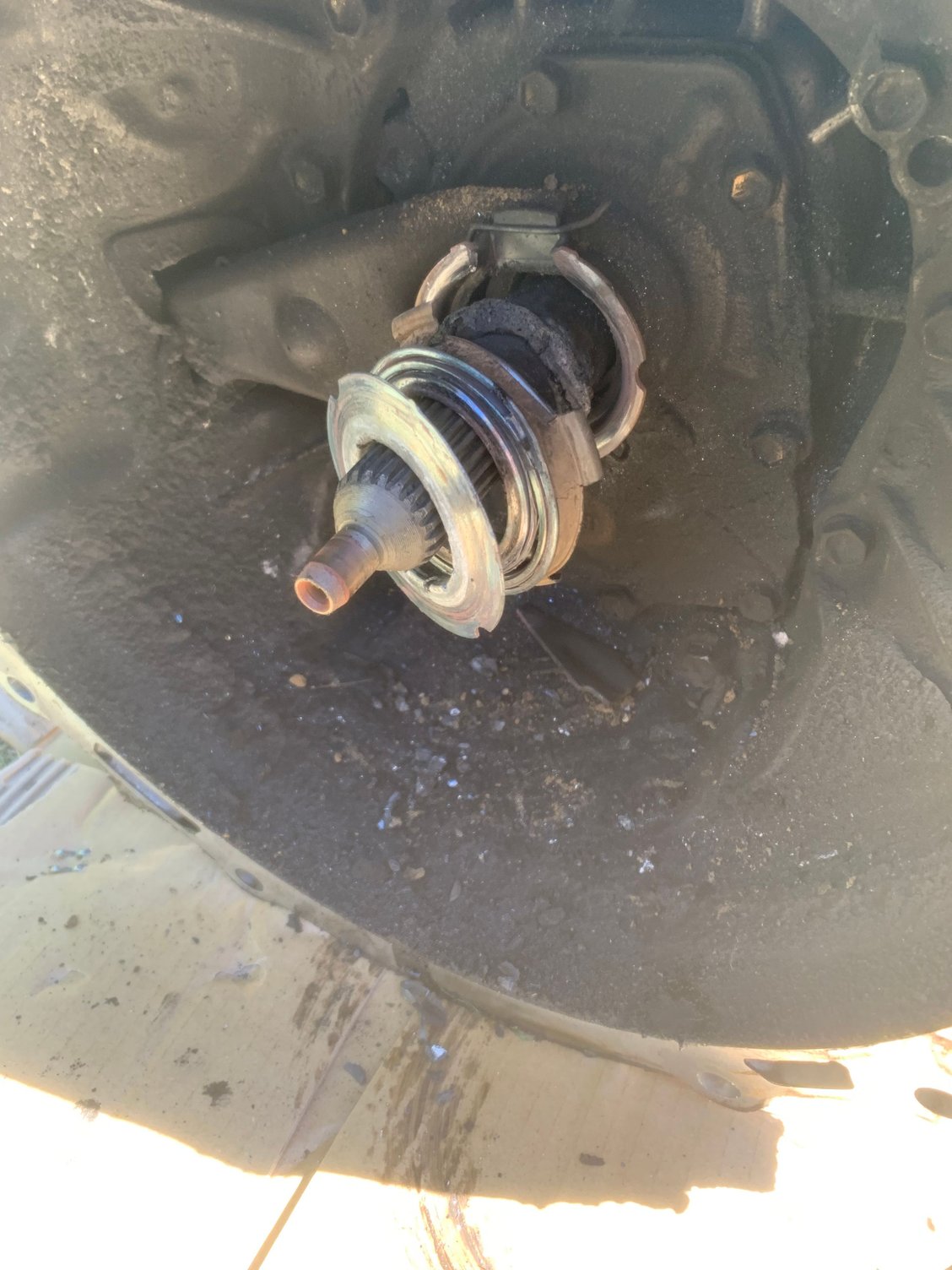 Yesterday I pulled the transmission and installed new clutch components. The old stuff was wrecked. The truck broke down on me as I was driving it home because the release bearing seized up… I managed to remove the pilot bearing with a hot dog bun which was cool. Shiny new stuff is in! I also went ahead and serviced the injectors.
