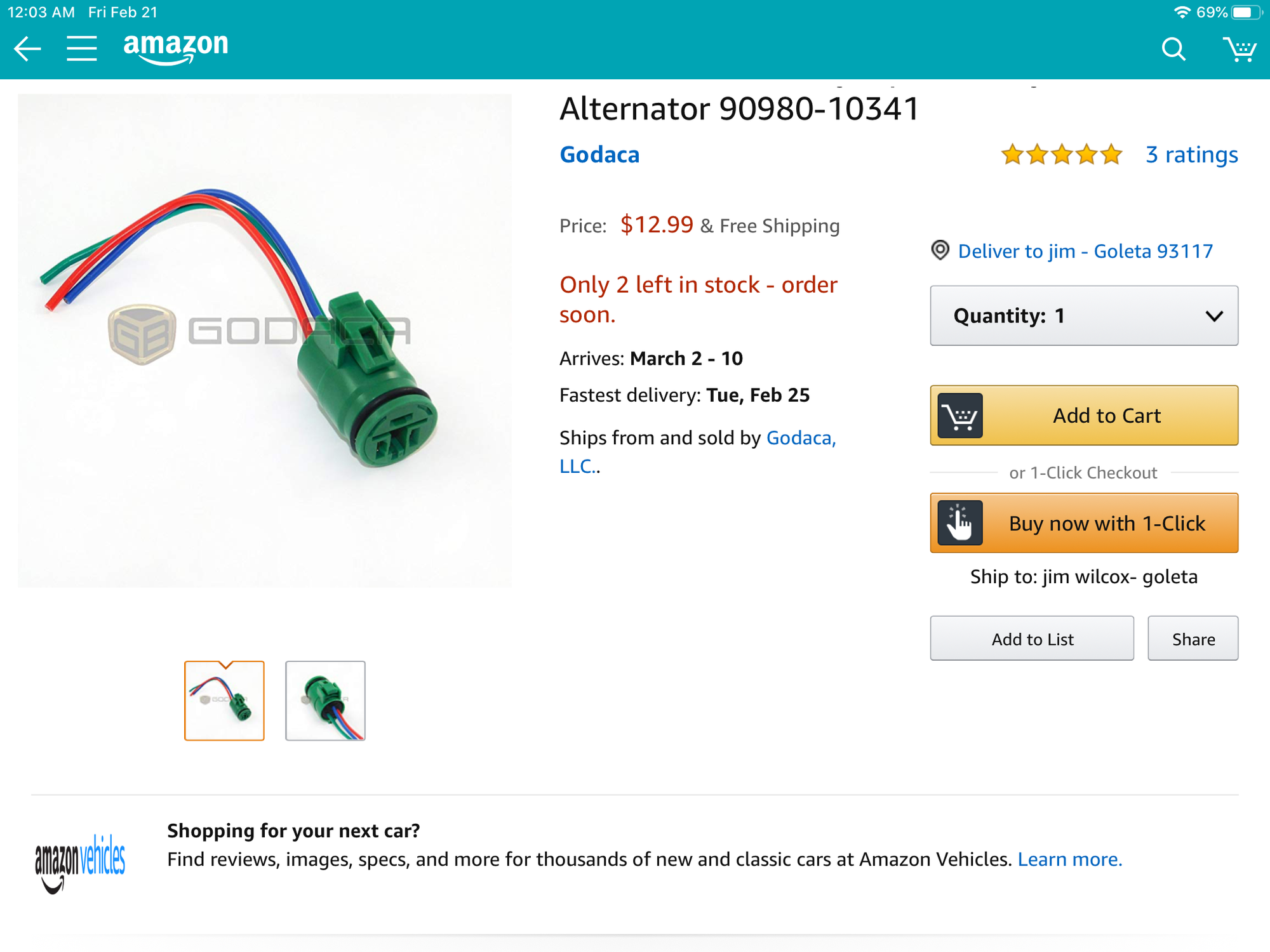 The Toyota part number should be 90980-10341. Depending on if you order on line, etc, price ranges $6.00-$12.00. I got a aftermarket one and it worked, but I think the locking tab is flimsy. It was also missing the rubber seals to keep moisture out where the wire enters the connector. I’m gonna get the OEM one next time I place a order.