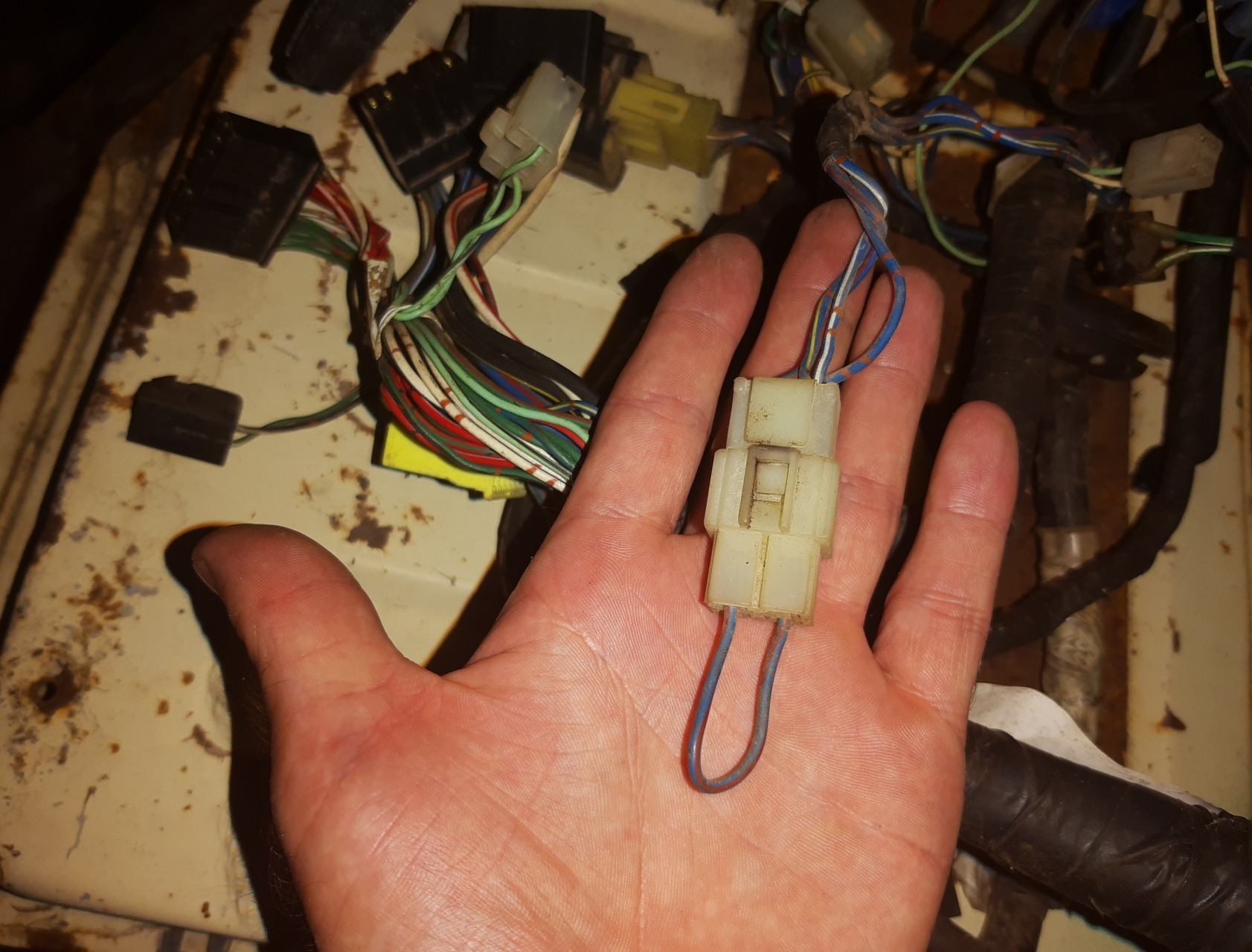The other connector on the right I think I found in the 87 wire diagram (doesn't exist in the 86 one). I know 87 had quite a lot of redesigns on the electrical, the main connector for the tail light wiring changed that year too. Anyway, the connector has notes that it's for the 22RE and 22RTE (fuel injected and turbo'ed). The carb'ed one used the same connectors as my 86.