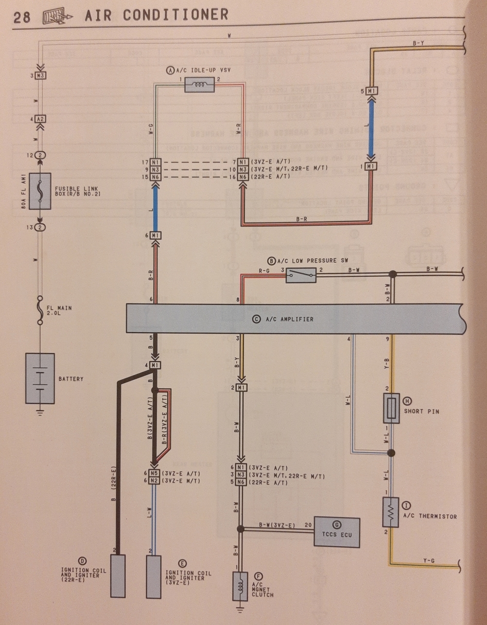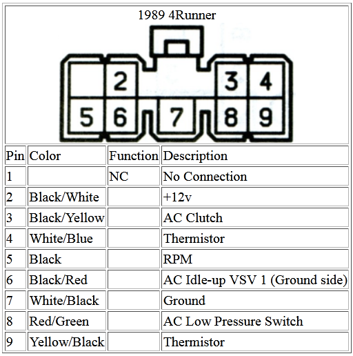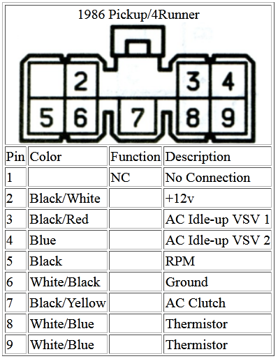Also, FYI, the AC amp has different pin outs based on engine/tow package etc too. Best I can tell, the main difference is the power source for the AC Idle up VSV is from the AC amp on the 86 truck, and for the 88 it's from the ign fuse directly. Guess the wiring you need will depend on which AC amp you're running (the 88 or 86?). If I'm understanding the wiring right, I should be able to make the pig tail and you swap the connector out and it should work. Only thing I'm not sure of is the VSV.