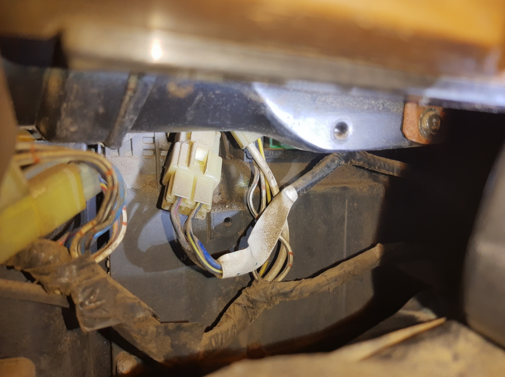 Here's that same connector on my 86 truck, glove box is installed, so a little hard to get pics.
