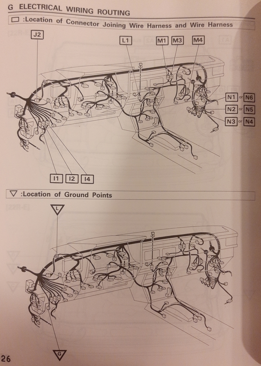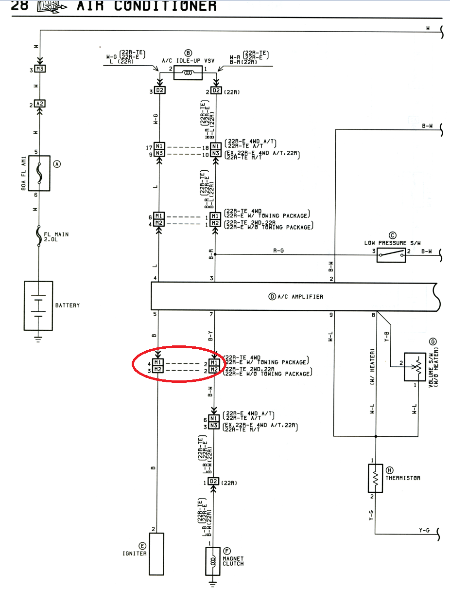 As you can see, M1 and M2 are two different options for connectors, atleast for the 86 trucks. turbo 2wd, and all 22r (carb) had the 4 pin. The towing package one doesn't make much sense, both connectors have it noted lol. In the diagram it shows the 4 pin was for trucks w\o tow package and 6 pin for with tow package. Not even sure how to tell the difference for the tow package xD.