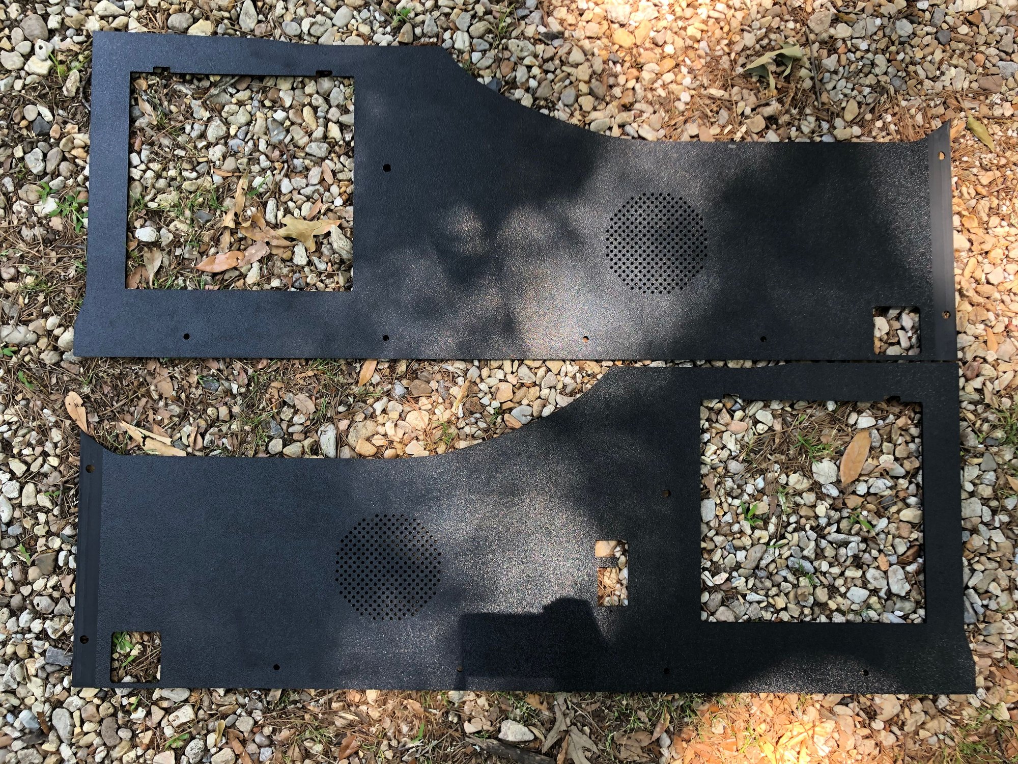 I am missing the original panel access doors as well. I was thinking about using small boxes, but that is out, not useful. So trying to figure out what to do for panel doors. Thinking about some of the electrical/remodeling access panel doors available at Lowes/HD, and painting them black.