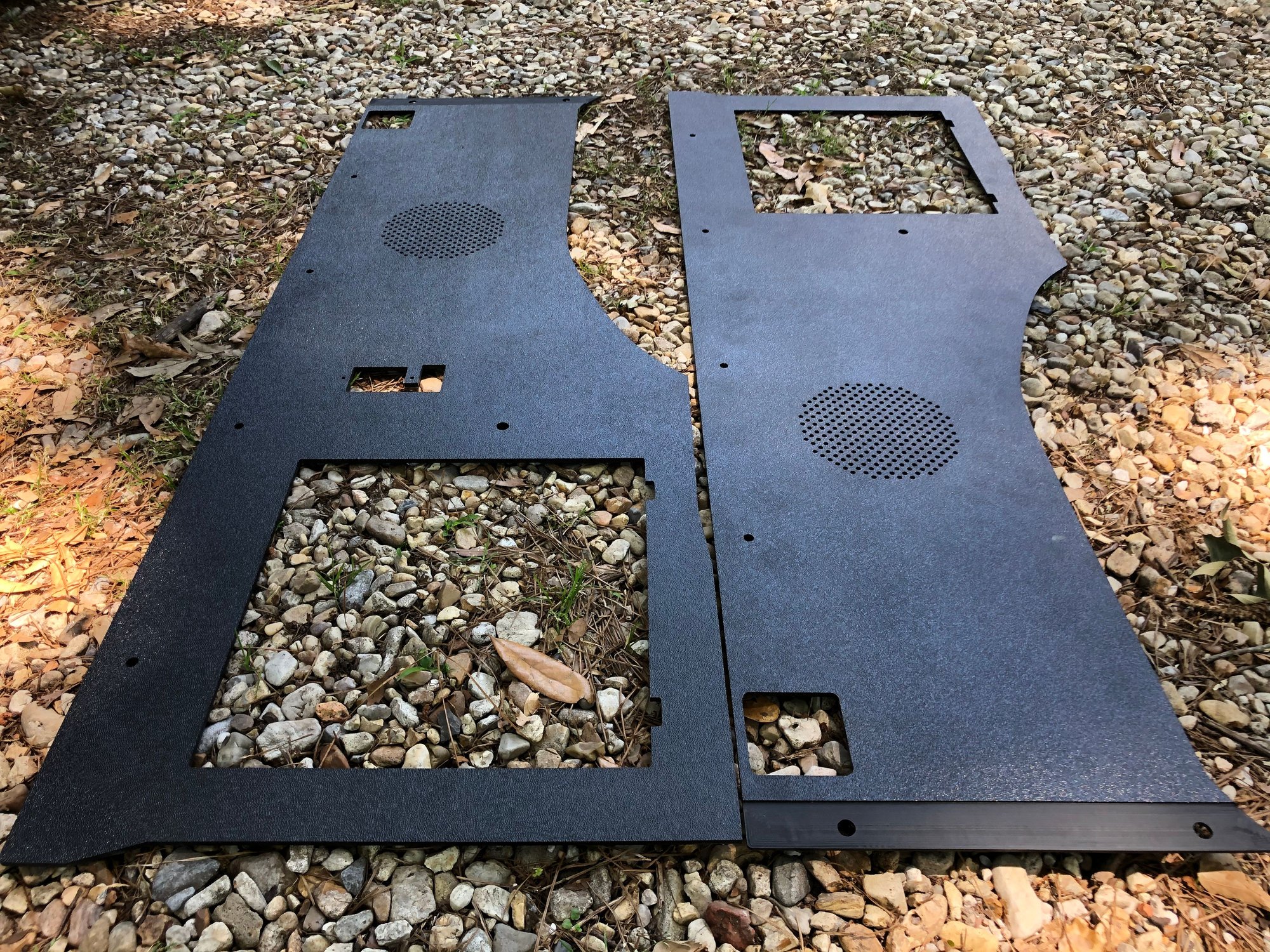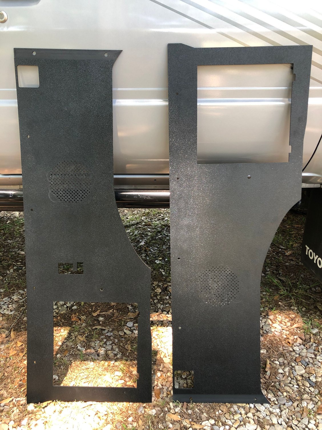 Been working on these for some time now. Lots of trial and error, adjustments to be made, alterations, and test fits. Anyways here are my ABS rear cargo panels. I decided to design them to use the oem cargo doors in the end. One of my trial runs was going to use some lockable marine batches but in the test fit there wasn’t enough backspace because of the jack and such. My final design has a stud that I use a solvent to bond onto the band of the panel to mimic the oem panel. They don’t curve at the tail end but they do follow the body “S” curve. I sold a couple sets to some guys that asked for them over social media. They’re 3/16 ABS and I milled down the front lip to 1/8” so the overlap sits flush.