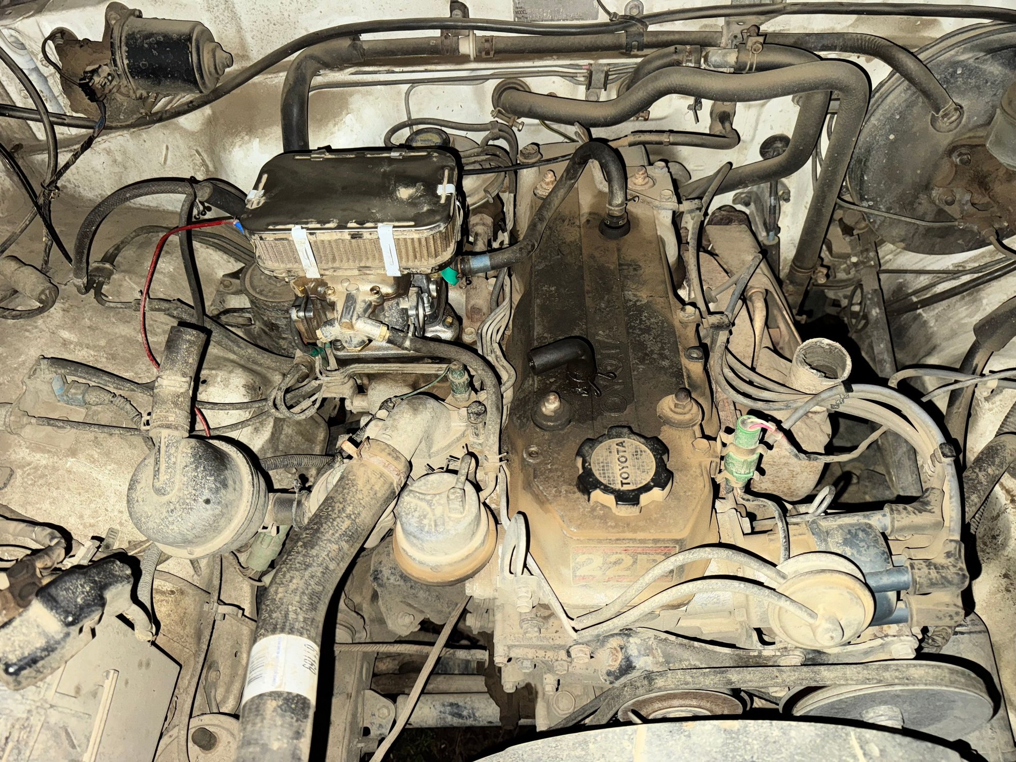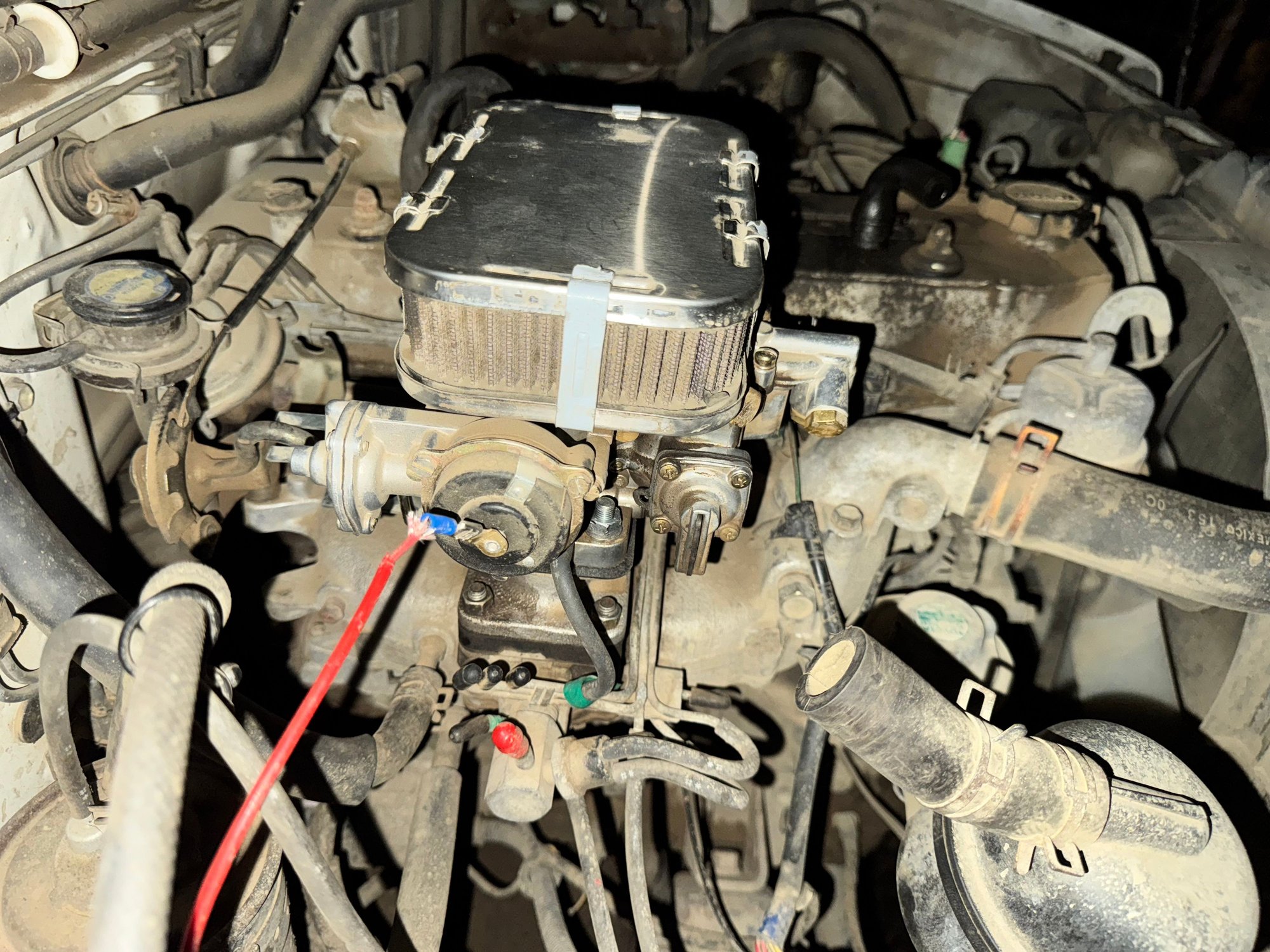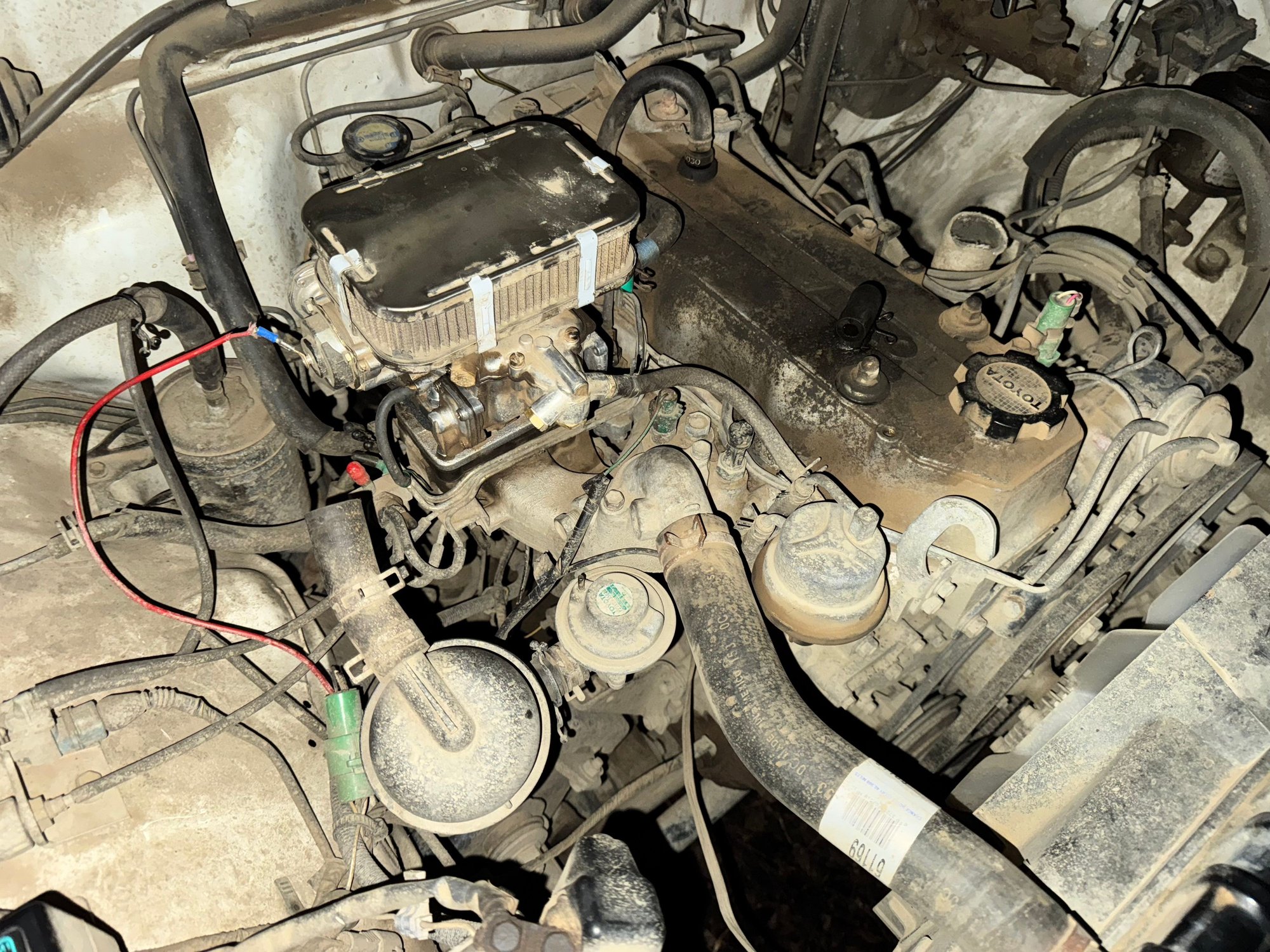 Did it ever run right after you put on the weber? There's a horrible amount of dust in the engine bay. The carb filter looks filthy. Maybe change the filter. A clean engine bay is a good thing.