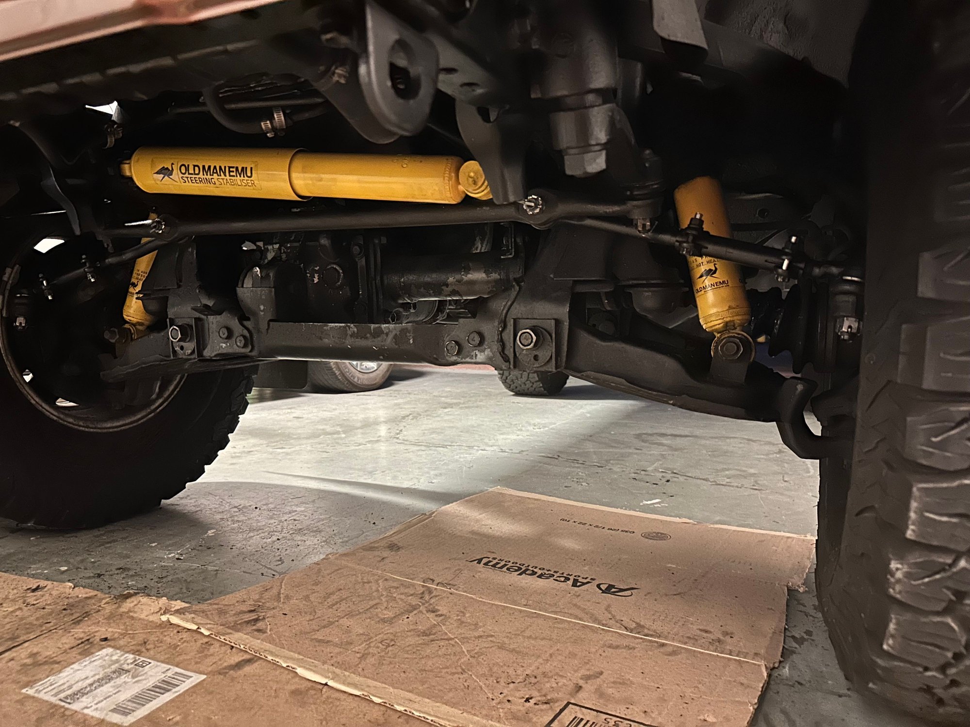Took a few hours and ruined a few tie rod end pullers, but it’s done. Steering is super tight again and the new OME steering stabilizer certainly seems to be more solid.