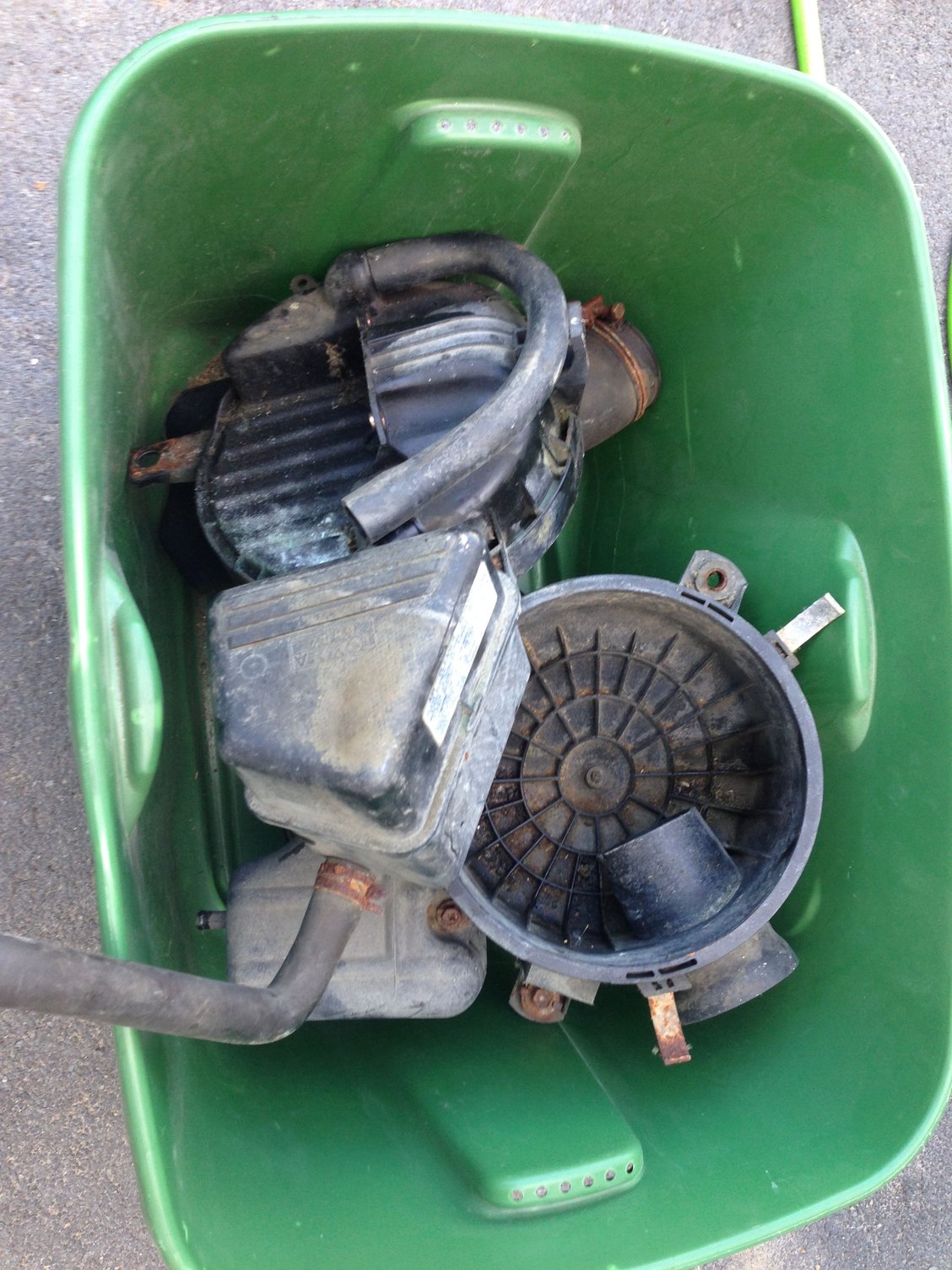 The previews owner attempted to build a budget cold air intake and basically failed IMOP. Yesterday I took a little time and deleted the longer section of the pipe he had installed and it seems to run a little bit better. My question is there a easy stock upgrade I might be able to find in a bone yard to replace the air box. I am also not sure about his vacuum line job.