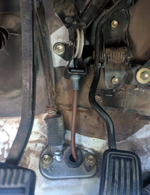 My my problem is that I have the guide/tube, but somewhere between the pulley and the intermediate link, the cable is bound up. All the linkage aft of the tranny moves freely. So I’m stuck leaving it in gear until I can figure out how to unbind it.
