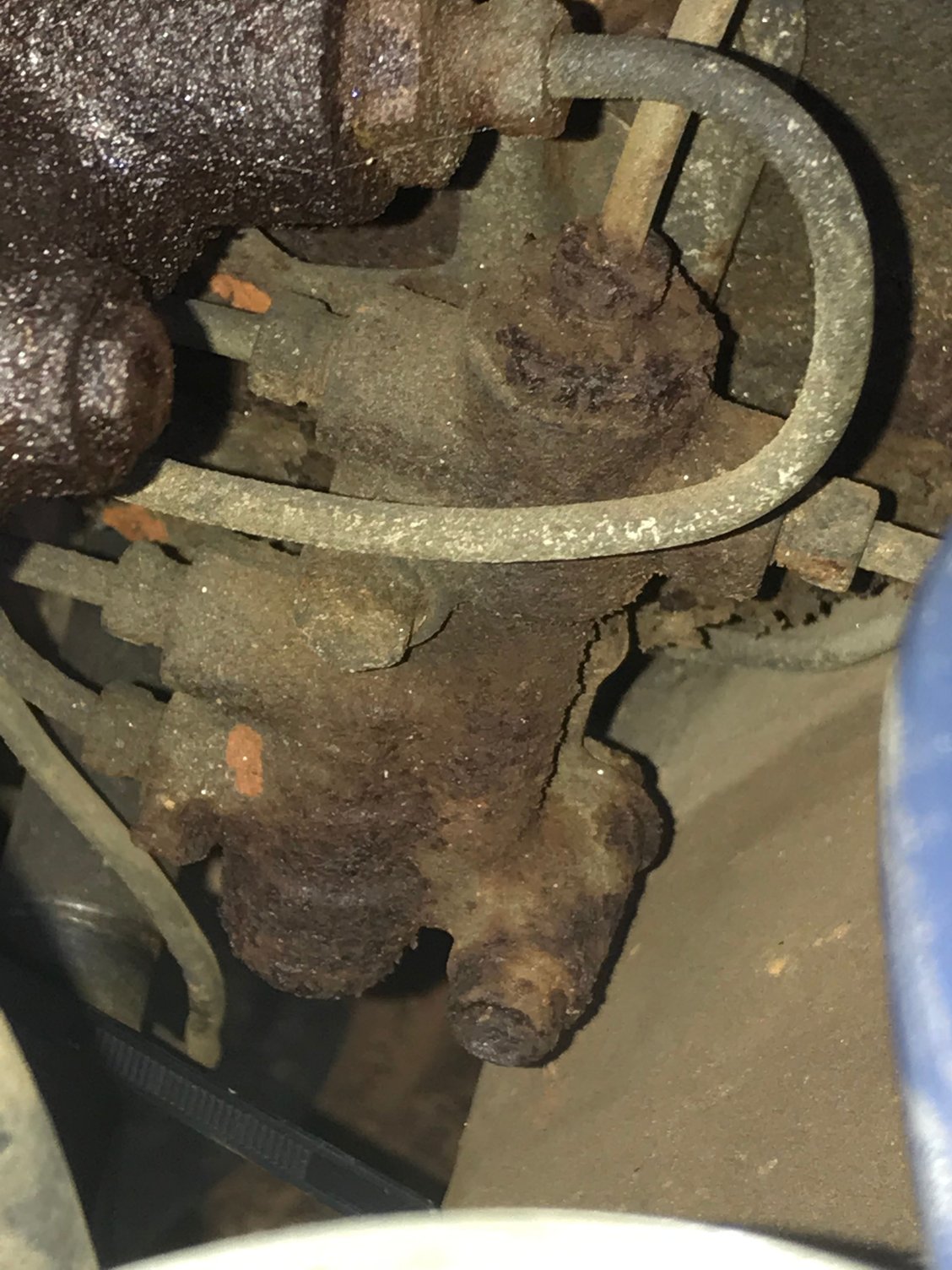 Might want to wire brush the valve too especially at the top there where that one line goes into the valve. It's not looking too good. When I changed out the valve on my Volvo, I sprayed it down every day for three days. I had a good line wrench, and it actually came off fairly easy. These type of valves can be a nightmare especially if the nuts start rounding off.