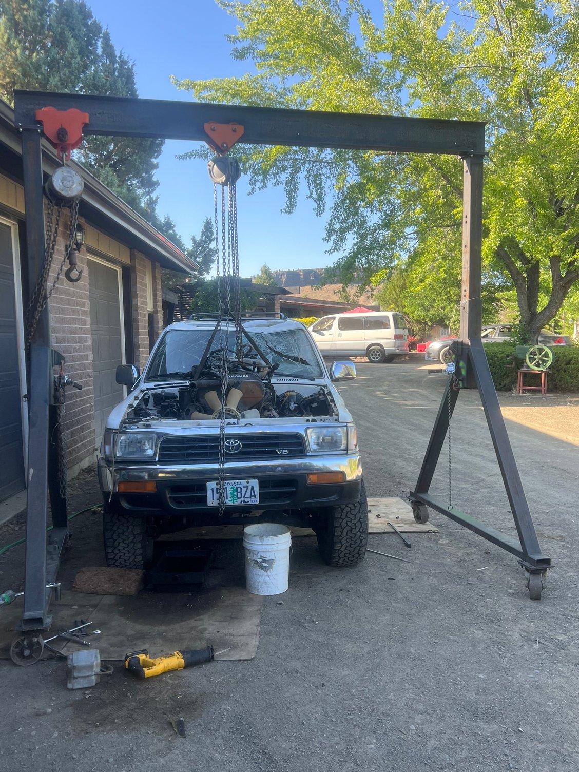 Got a free 95 4Runner in great shape, 3.0 ran, trans would not go into reverse, while searching on Craigslist I found a rolled 94 with a 3.4 swap already done and a manual transmission behind it. I’m in the midst of doing a 5speed swap, 3.4 swap and manual hubs. Progress at the time of writing this is I gutted the 3.0 and auto, on to tearing apart the donor vehicle. If anybody sees parts in the rolled rig they want lmk