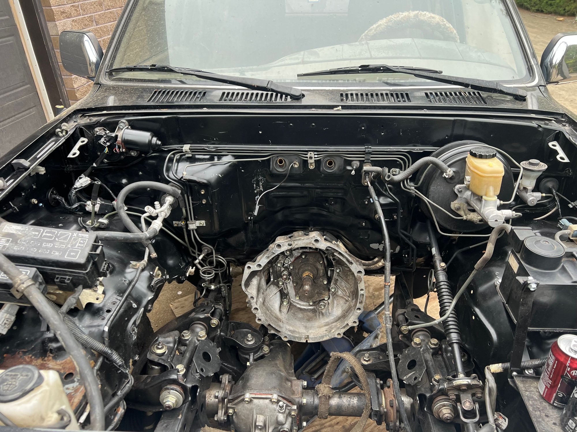 Progress today! Now I’ll start taking the transmission the rest of the way out and get all the 5 speed goodies off of the donor (clutch hard lines, master cylinder, and pedal assembly) Cleaned some of the gunk off