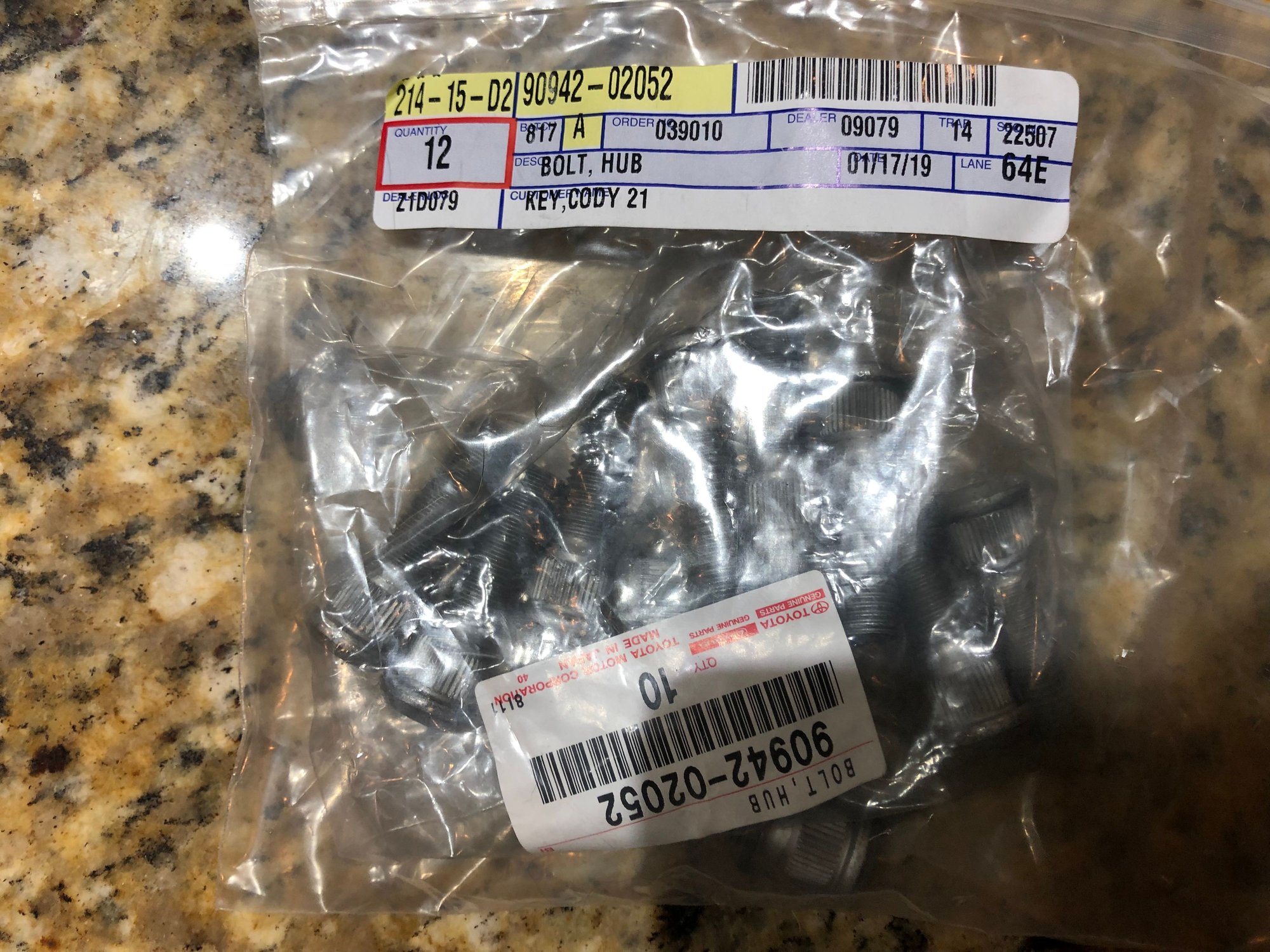 i got some doodads from the Lakeland Toyota overstock today. I was missing the lower half of the front cardan joint dust shield and they had one in stock, also got all the rear lug studs. Here’s the part numbers.