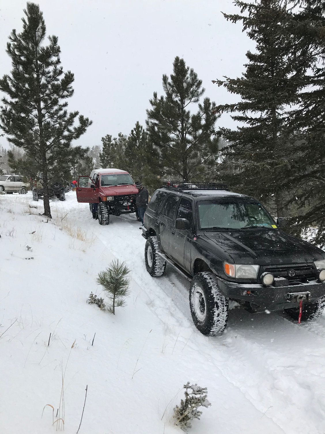 Did not put in the fuel pump yet went wheeling with some club members. Rode in the red 4runner my buddy just spent years building it was it’s fir day out on the trail. Snow got really bad heading back into town snow plows are probably going to be running all night. I am going to try and change it out tomorrow and pull that wire out of the ecu harness until Toyota opens and I can order two new sensors.
