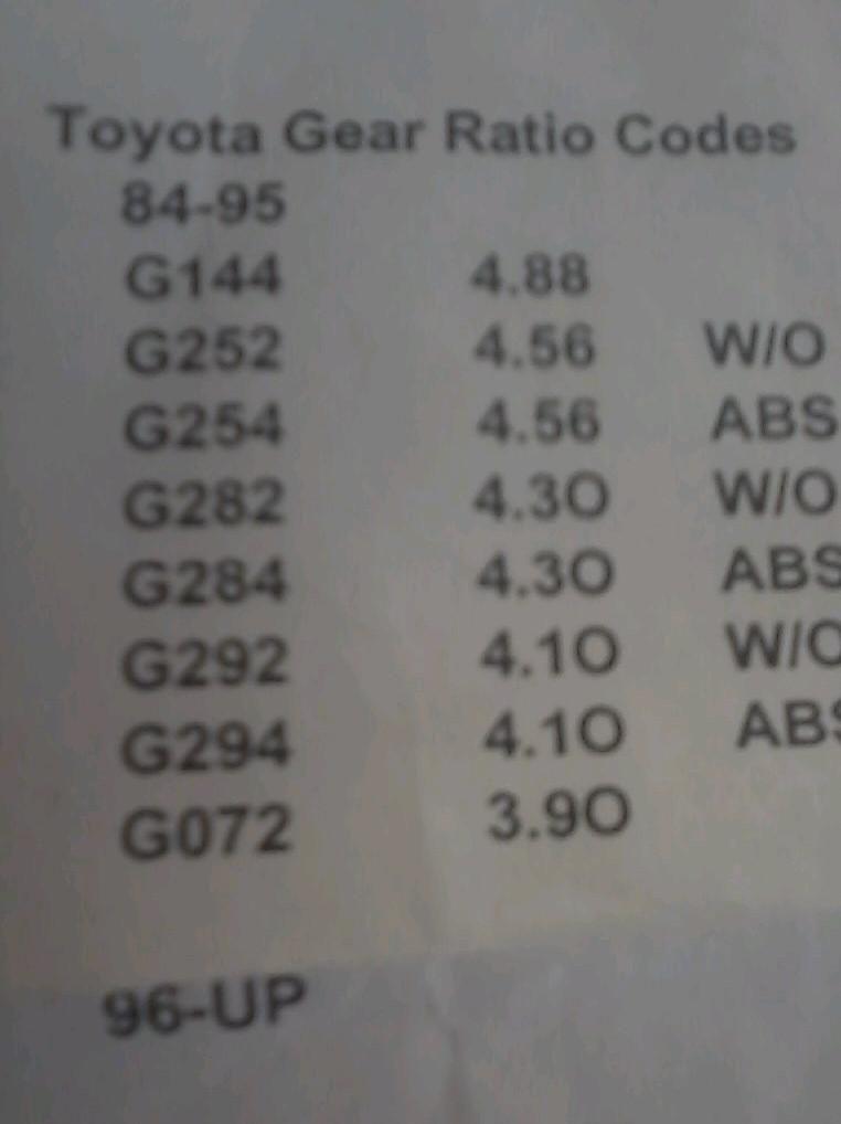 The 4.56 (code G254) was stock with the V6 5-speed with 31 inch tires. The door sticker may not indicate 31" tires - they were a dealer add-on to get around some import taxes. The vehicles shipped with smaller tires and then the dealer put on the 31's. Gearing was set up at the factory for the 31's. (A lot of these vehicles had dealer installed air conditioning for the same import tax reason.)