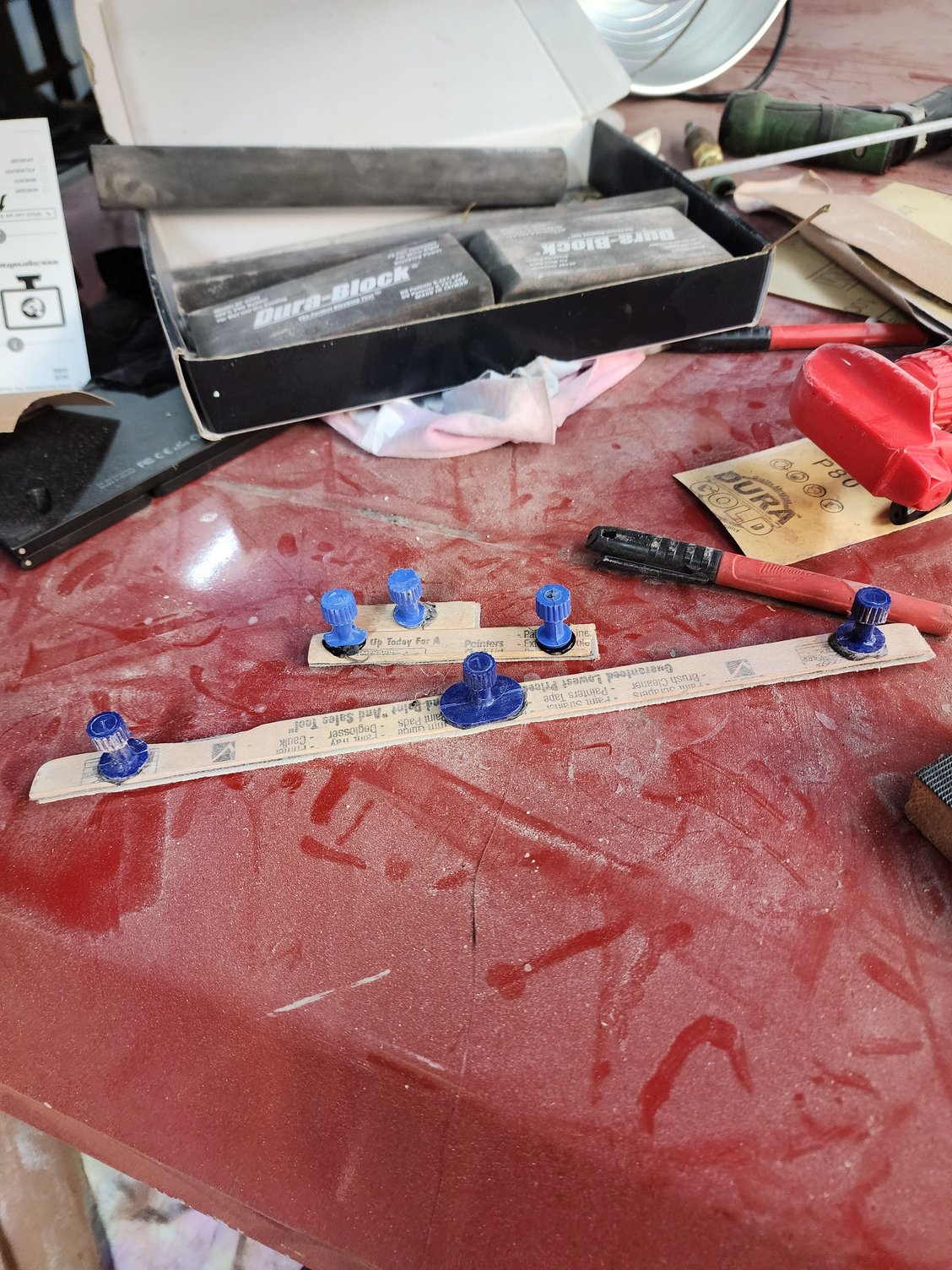 No experience painting so I have lots of primer sanding to do. Also more fill work, but nothing will be too thick. I had to get primer on it before I wanted to due to damp conditions. I did turn up the air pressure a little and tuned down the paint and that seemed to help. Next, I plan to mist it with dark primer and block sand to find the imperfections. No matter what, it'll look better than it did.