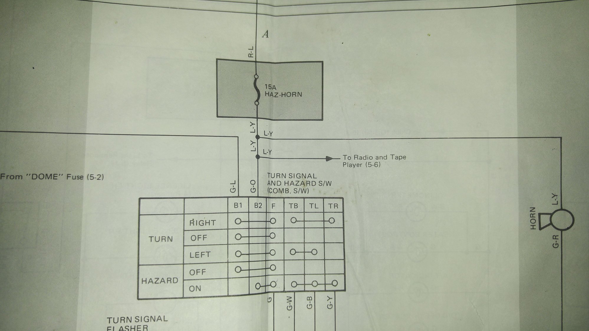 Hi Paul22re. The radio works. I think the horn maybe the contact on the back of the steering wheel but I am certainly not sure about that. I just read about the contact last night.. If the radio works. i guess the blue yellow wire cant be it. Do you know where the flasher relay is located on my truck? I have read alot and cant seem to find it. Thank you for your help.