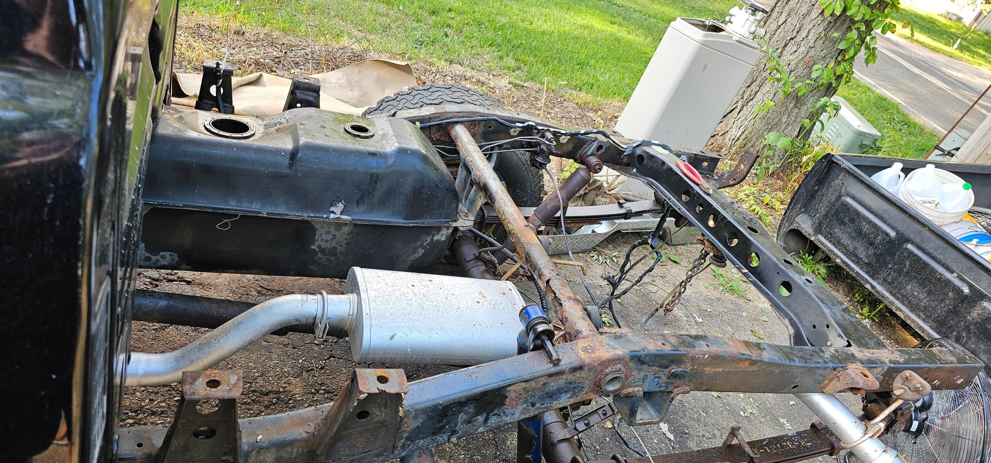 cut out the old one as close to the plates as I could , and used a rasp on the hole threw the frame , slid the new tube in place and welded it in solid , then added the fuel mount and shock mounts