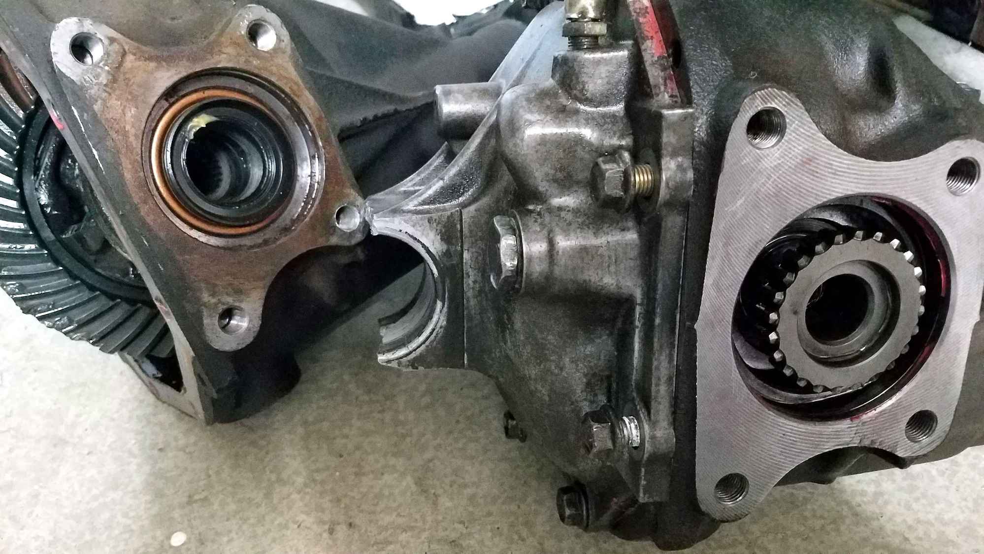 Sorry, I don't have any pics of it, as I haven't pulled it off yet. I was going to have to drop it out of the way to do the dreaded oil pan gasket. When I drained the front diff fluid in preparation, a chunk of one of the gear teeth came out. Which probably explains the loud sound (like I was hit with a golf ball rather hard) that I heard while just driving down the road about 1k miles previously. Not wanting to pay somebody to rebuild it, I'm planning to just swap it out with a used one. Anyway, since my garage is rather small, I'm not pulling it off till I get the replacement.